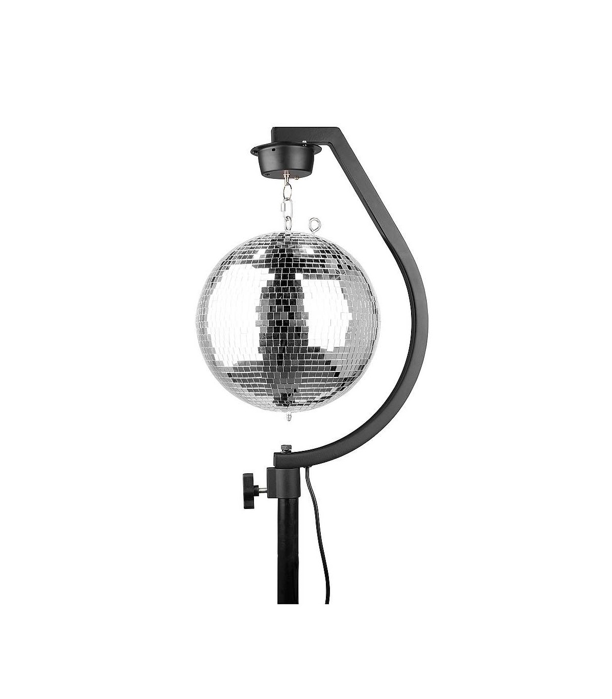 - Supporto curvo per palle da discoteca fino a 30 cm Costruzione in acciaio durevole Il motore fluido funziona a 3 giri/min costan
