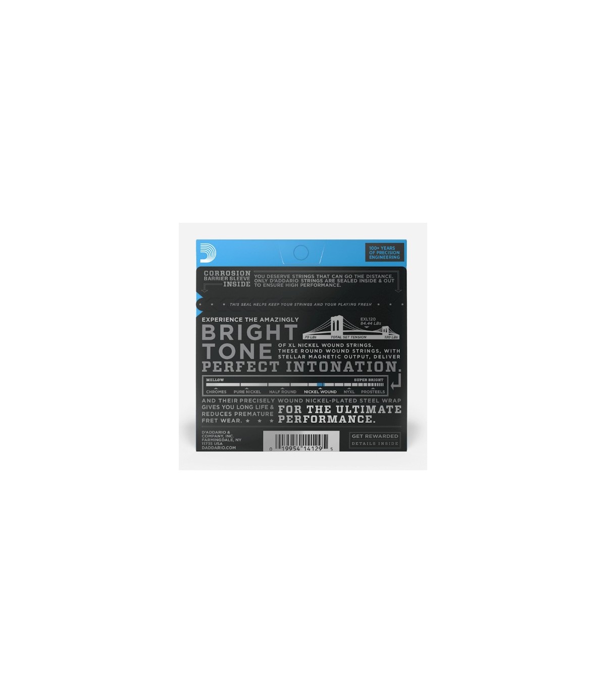 Le XL avvolte in nickel, probabilmente le corde D'Addario per chitarra elettrica più famose di sempre, sono avvolte con precisione utilizzando acciaio al nickel intorno a un'anima esagonale in acciaio con elevata percentuale di carbonio. Il risultato è una corda dalla durata prolungata, timbro brillante e un'eccellente vibrazione, che la rende la scelta ideale per una vasta gamma di chitarre e stili musicali