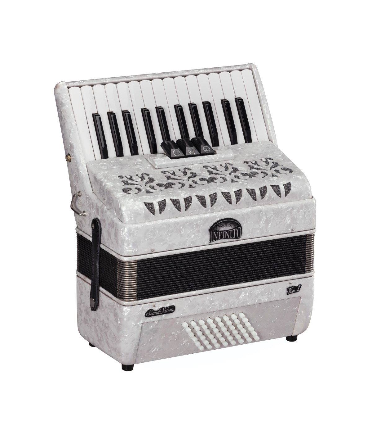 Soundsation presenta la nuova linea di fisarmoniche Infinito. Il nome non è stato scelto a caso. Infinito ricorda infatti il nostro territorio, le marche, che vanta di una lunga tradizione e che ha reso la fisarmonica famosa in tutto il mondo. Progettata da un team italiano la fisarmonica Infinito sposta verso l’alto l’asticella di strumento entry level con un rapporto qualità prezzo senza pari. La gamma è completa e disponibile in diverse misure, dalla 48 fino alla 120 bassi.