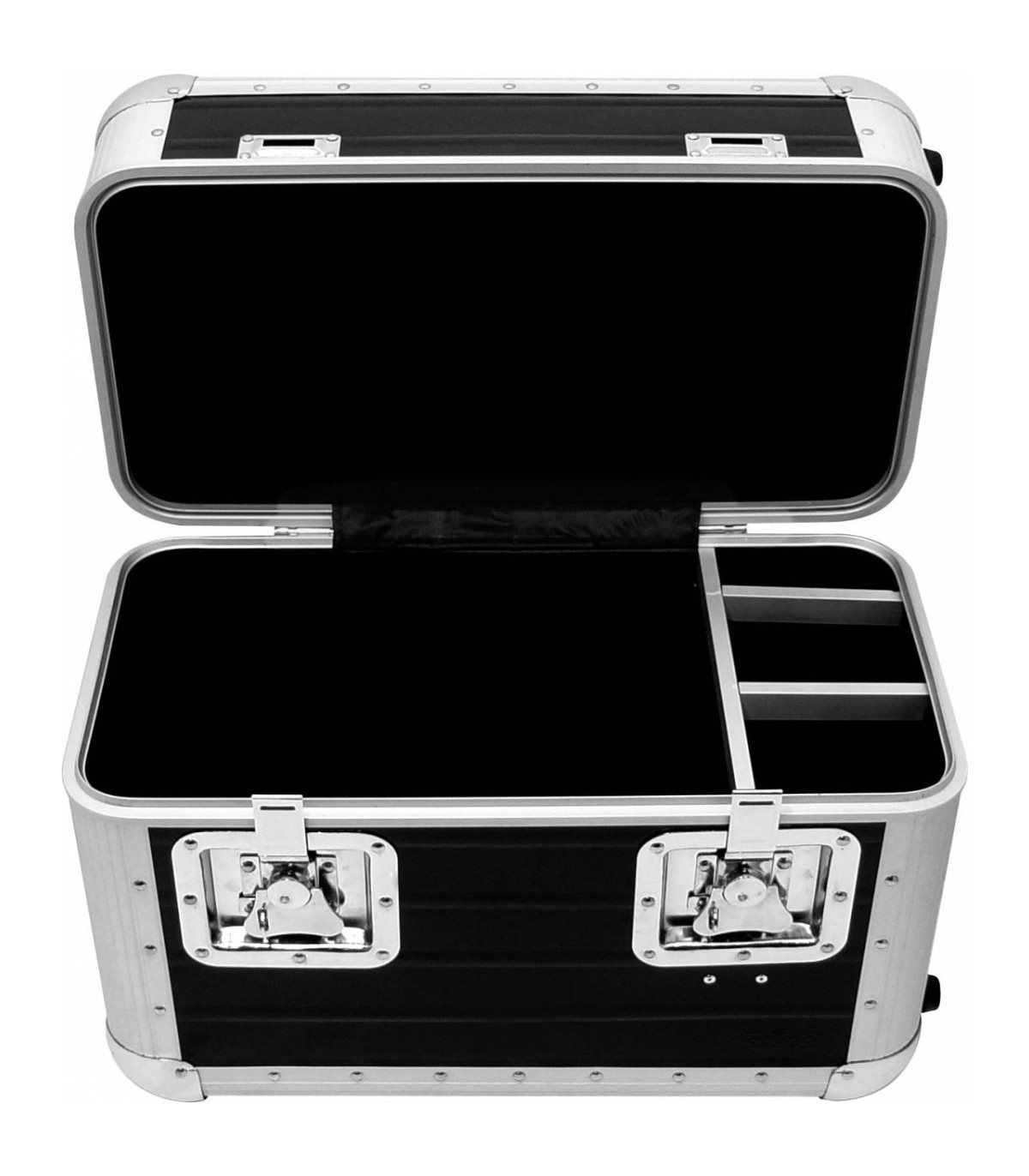 Con il recordcase TP-70 XT Zomo ha un DJ case nel suo programma, che può essere rotolato molto comodamente al set successivo grazie alle 3 ruote integrate e il braccio generoso. All' interno c' è spazio per circa 70 LP e nei vani laterali separati c' è spazio per un microfono, telefono cellulare ecc. La case per vinile è pulita e di alta qualità rifinita e il compagno ideale per il DJ in viaggio.