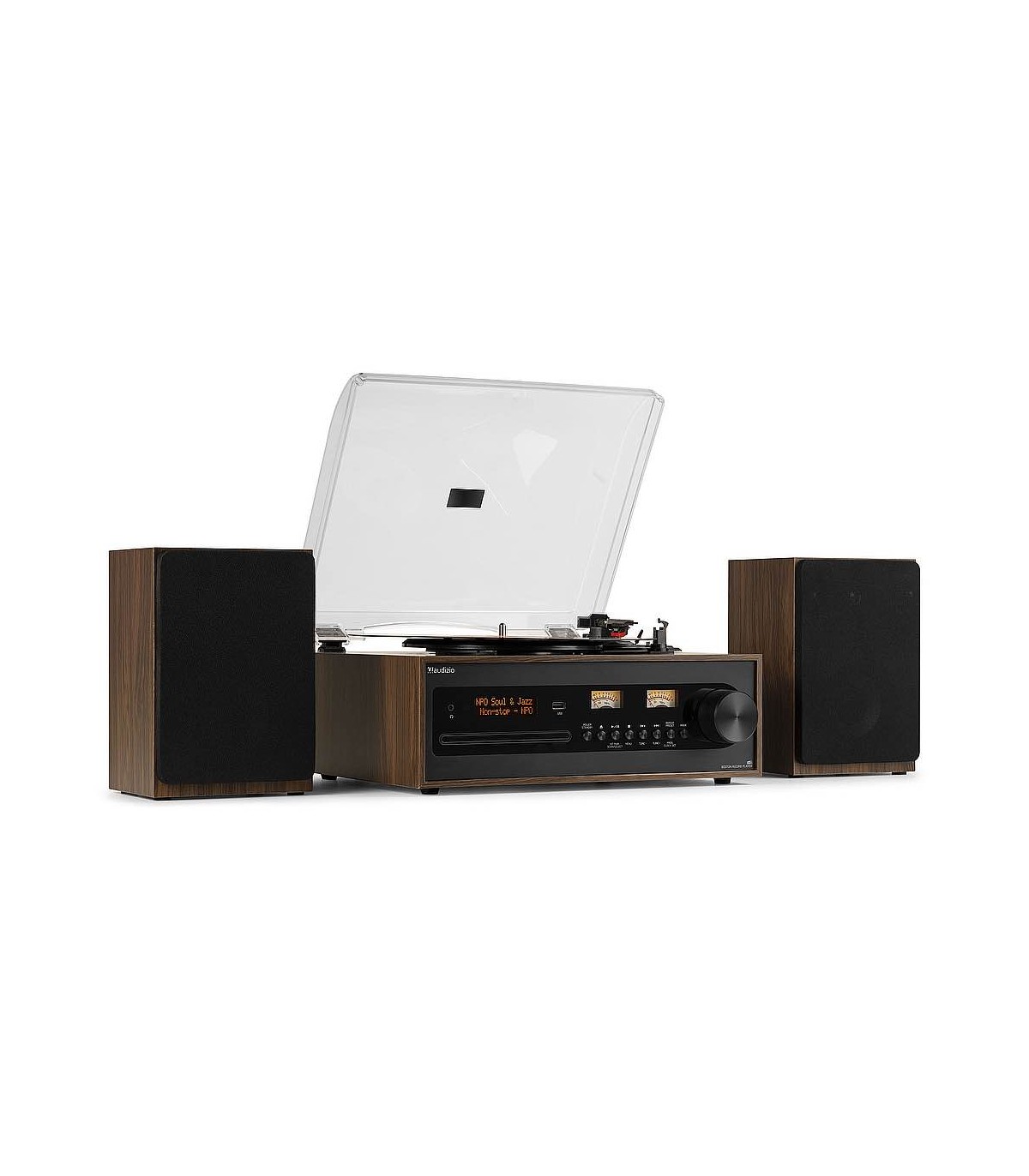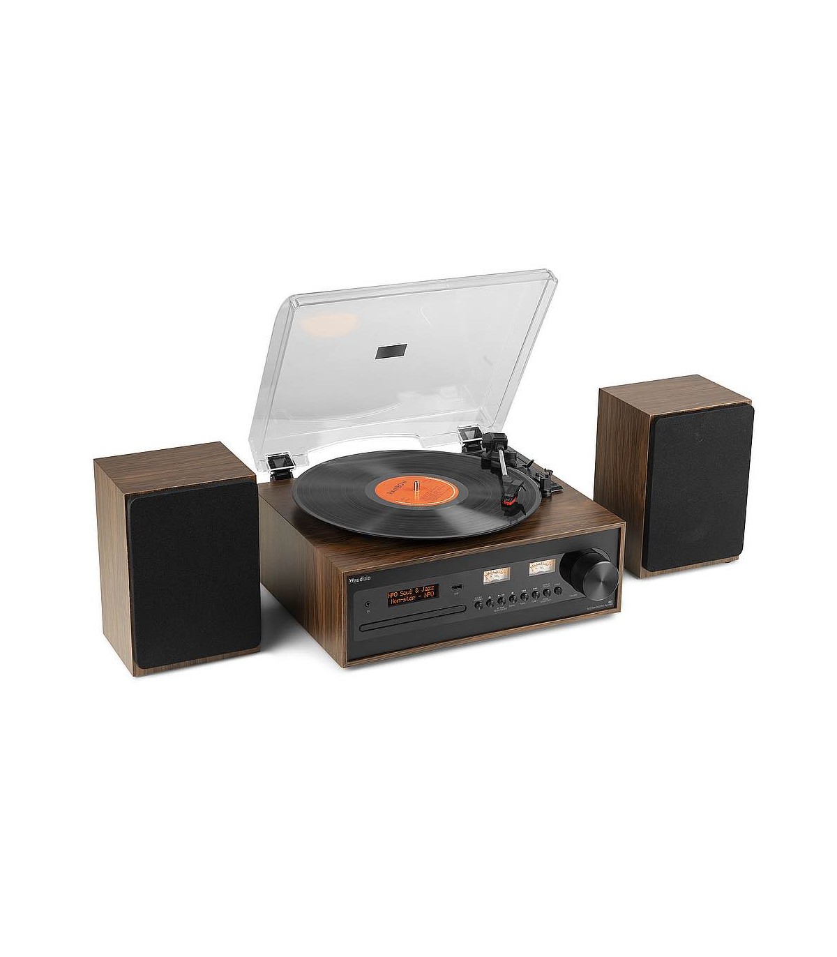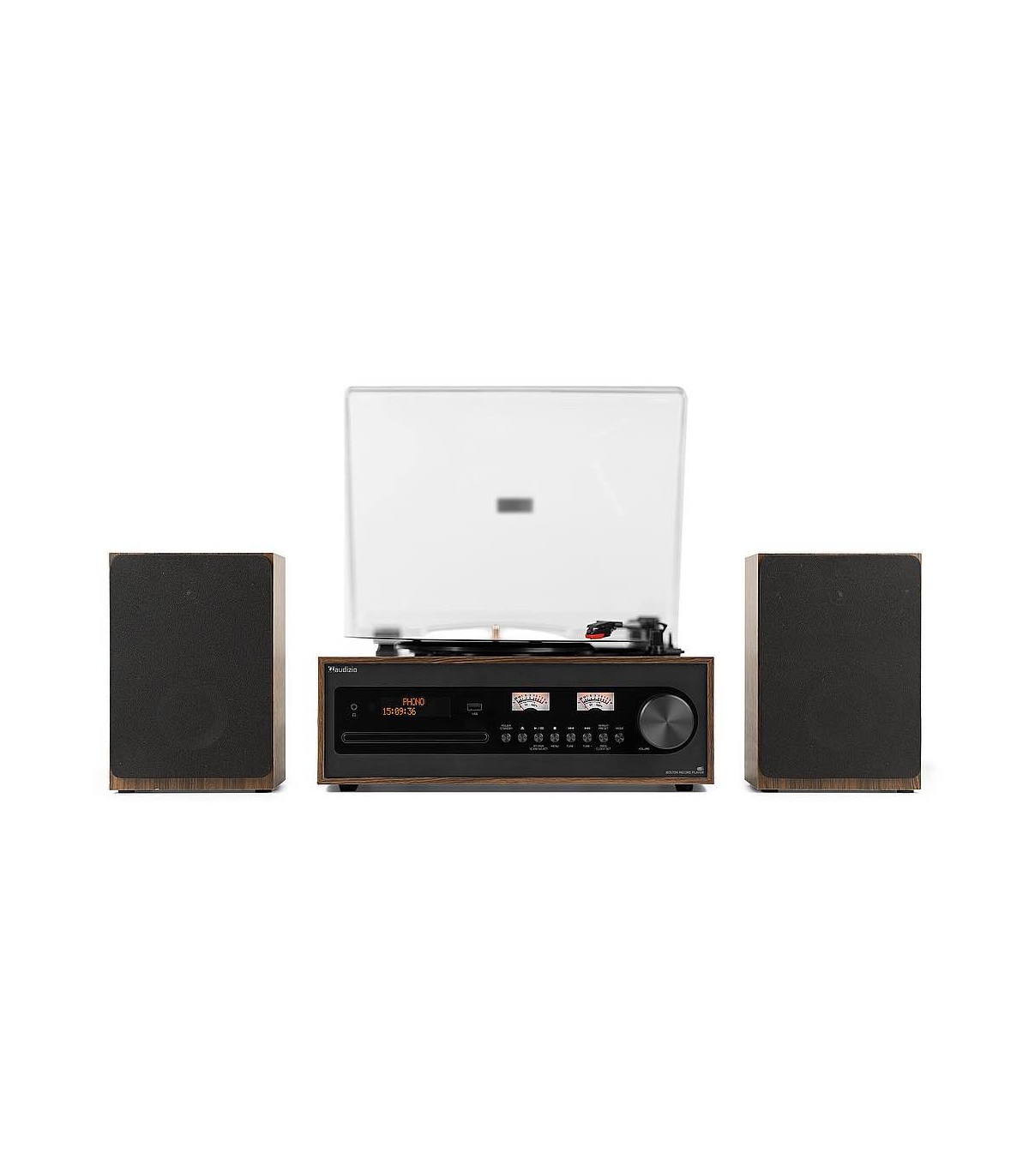 Il Boston Record Player Set, con il suo stile retrò, è un sistema HiFi che non è solo bello da vedere, ma diventa il cuore della tua raccolta musicale. Ascolta tutti i tuoi dischi in vinile da 7 pollici, 10 pollici e 12 pollici con una qualità ottimale attraverso i due altoparlanti HIFI inclusi. Il frontale in stile vintage è caratterizzato dall'ampia manopola del volume e da due tradizionali VU meter. Il centro musicale di Boston dispone anche di un lettore CD compatibile con MP3, una porta USB e tutta la tecnologia moderna che ti aspetti, tra cui una radio DAB+ e un lettore multimediale BT integrato per lo streaming musicale wireless.