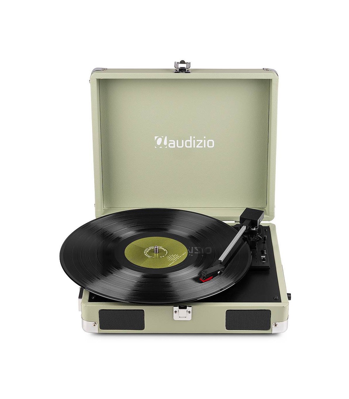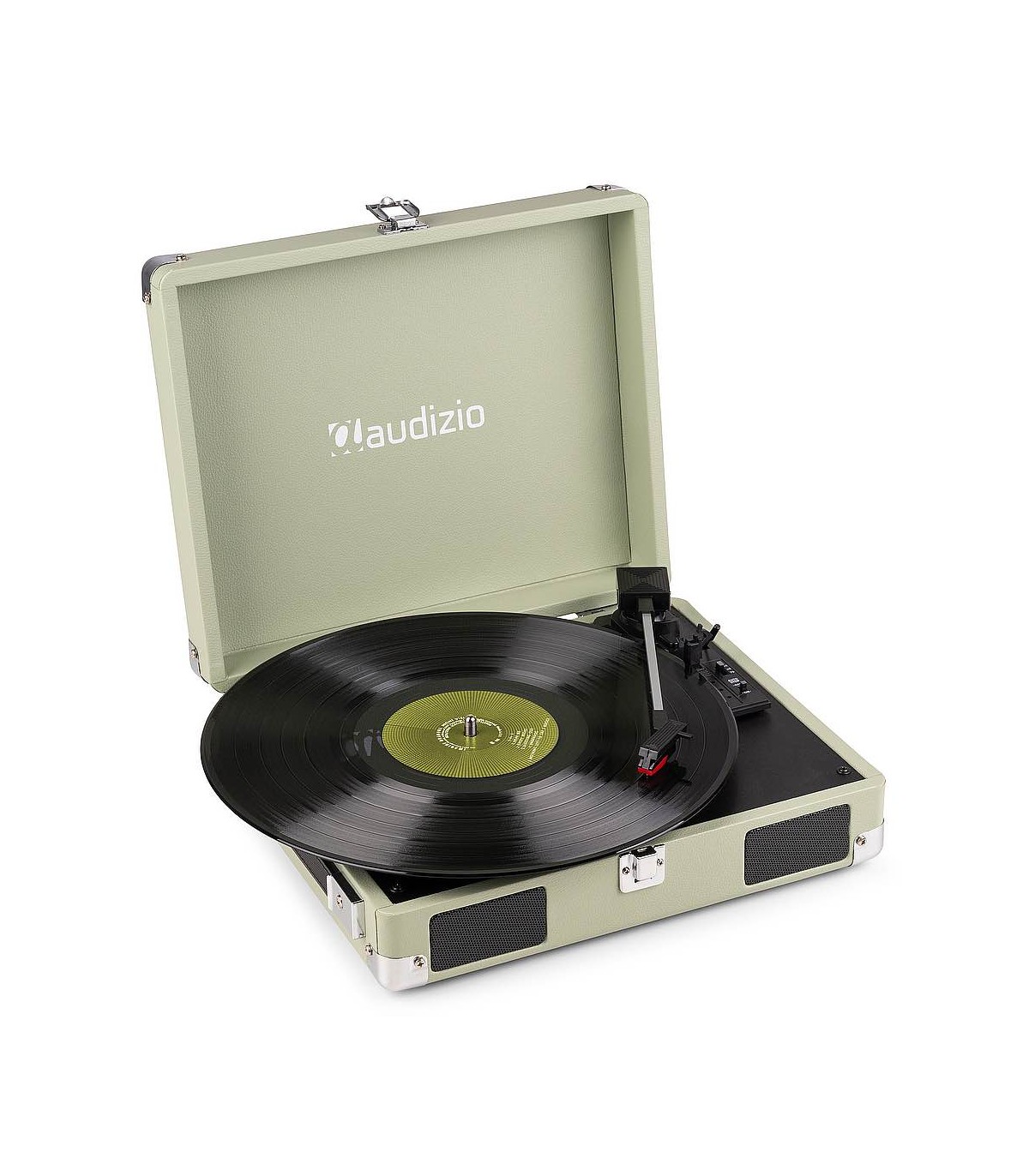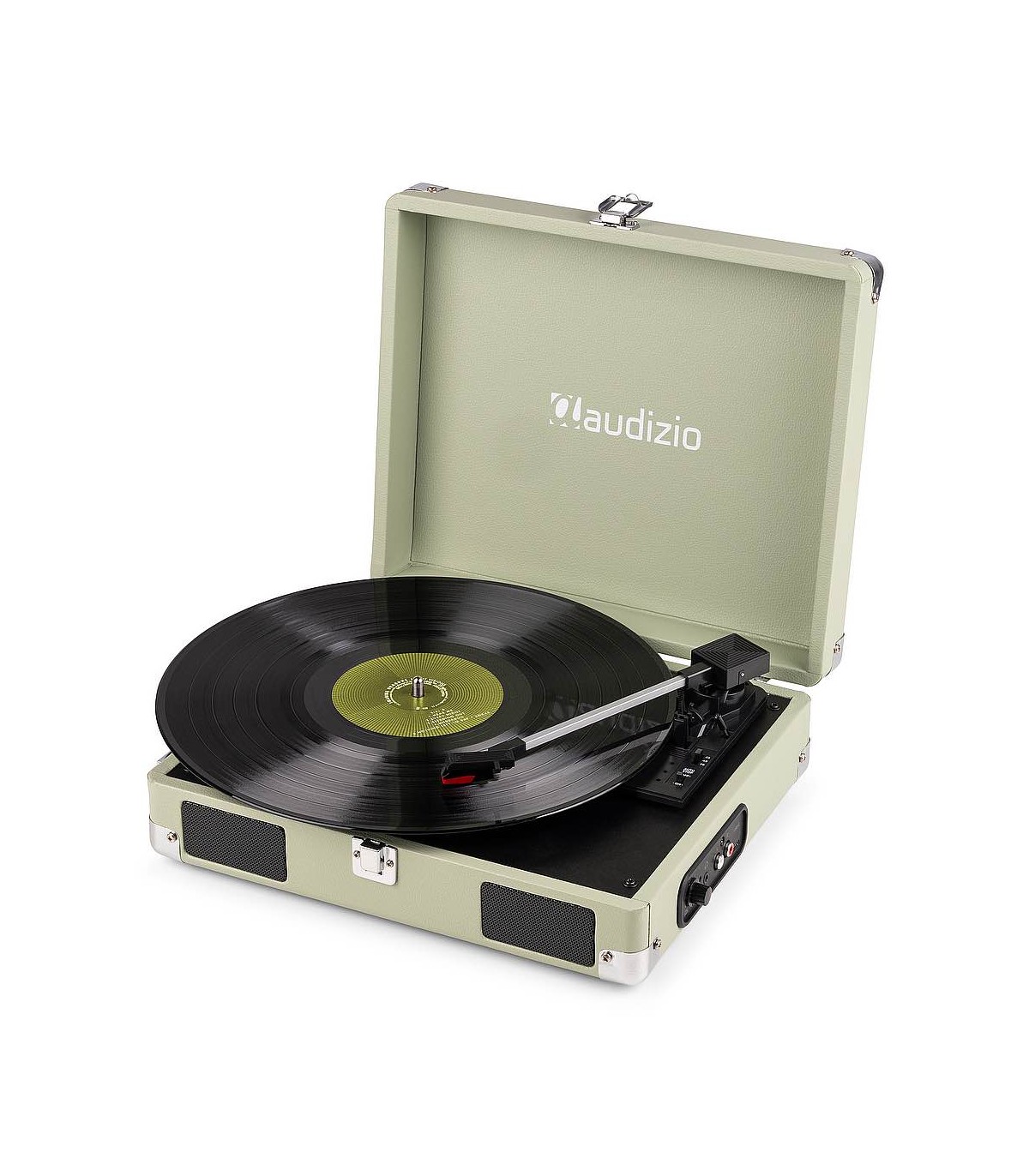 Il giradischi RP111 con design a valigia è la perfetta combinazione di trendy e retrò. Questo giradischi dal design elegante ha una finitura in similpelle nostalgica, è leggero e consente di ascoltare musica senza doverlo collegare a un sistema di altoparlanti grazie al sistema di altoparlanti stereo integrato. Il design portatile e la maniglia per il trasporto ti consentono di ascoltare la musica ovunque.