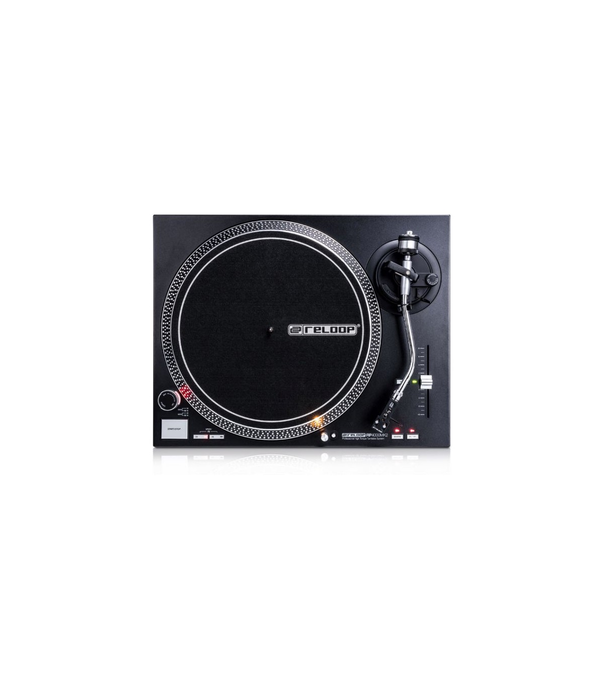 Giradischi professionale a trazione diretta, regolazione al quarzo, 3 velocità (33 1/3, 45 e 78 giri), braccio a “S” bilanciato staticamente, pitch regolabile +/-8% e 16%, pulsante forward/reverse, robusti piedini anti vibrazioni, finitura metallica verniciata nera, dimensioni mm 450 x 144 x 352, peso kg 9.8, alimentazione 230V. N.B. Include testina e puntina.