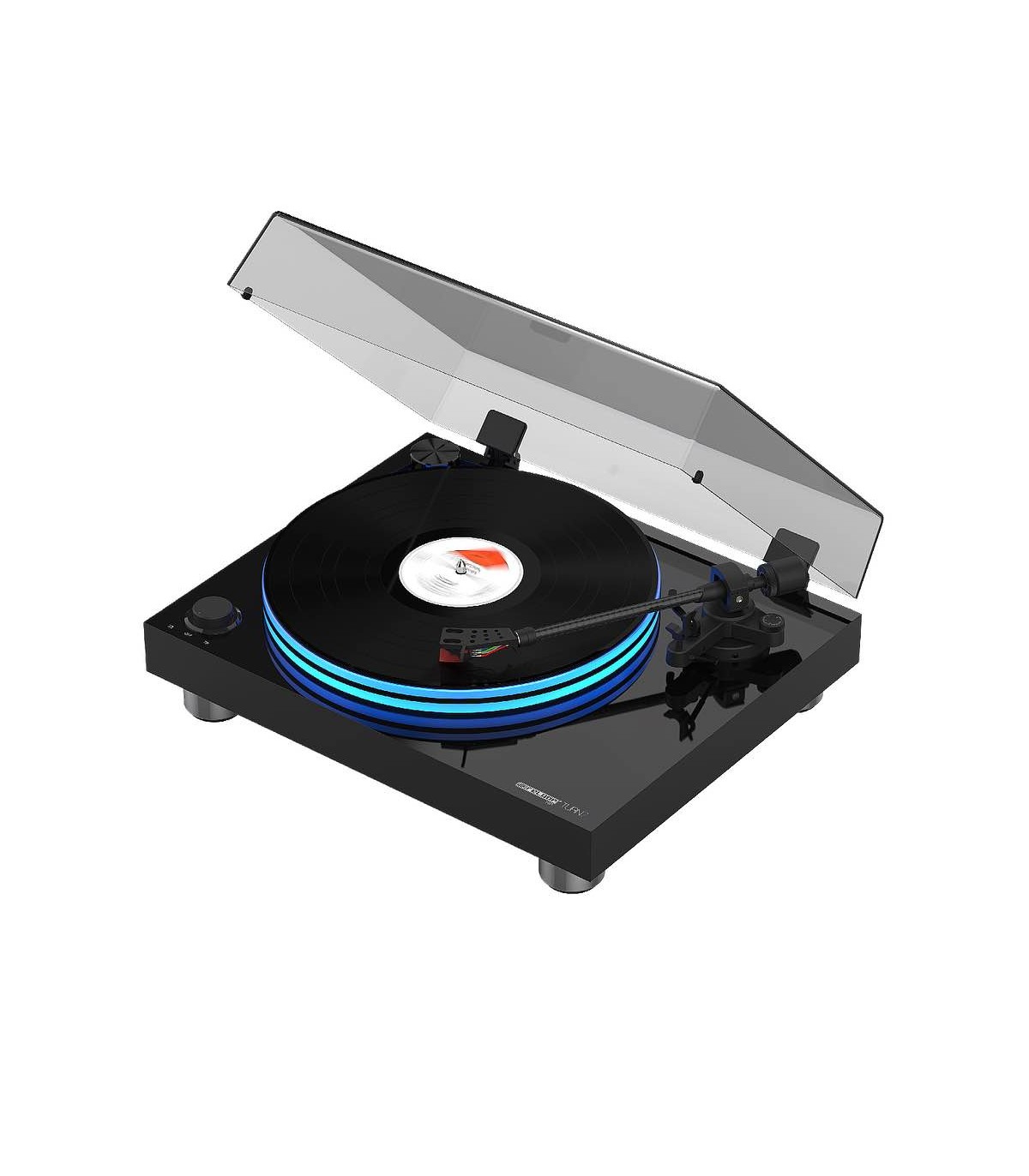 Giradischi Hi-Fi di altissima qualità, con motore decratralizzato e trazione a cinghia esterna sul piatto, controllo manuale con selettore 33 e 45 giri, piatto in acrilico da 20 mm (peso 1,7 kg) con eccezionali proprietà di livellamento / elettrostatiche e bordo illuminato a LED (con interruttore LED on/off), braccio “Audiophile” in carbonio con regolazione in altezza (VTA) e regolazione anti-skating, cartuccia Ortofon 2M Red preinstallata per una riproduzione e una fedeltà del suono ottimizzate, connessione USB (PC/Mac) per registrazione e digitalizzazione dei disch in vinile, preamplificatore integrato di alta qualità (uscita phono/linea commutabile), connessioni audio placcate in oro e resistenti alla corrosione, (cavo RCA e cavo di alimentazione rimovibili), piedini in alluminio antiurto regolabili in altezza per un efficace disaccoppiamento, case in MDF massiccio con finitura stile pianoforte e un design senza tempo, dimensioni mm 420 x 356 x 148 (h), peso kg 8.2, alimentatzione 12V / 1A DC. Include testina e puntina Ortofon 2M Red, alimentatore internazionale (UK/EU/US), coperchio antipolvere, adattatore in alluminio da 7" e cavo USB.
