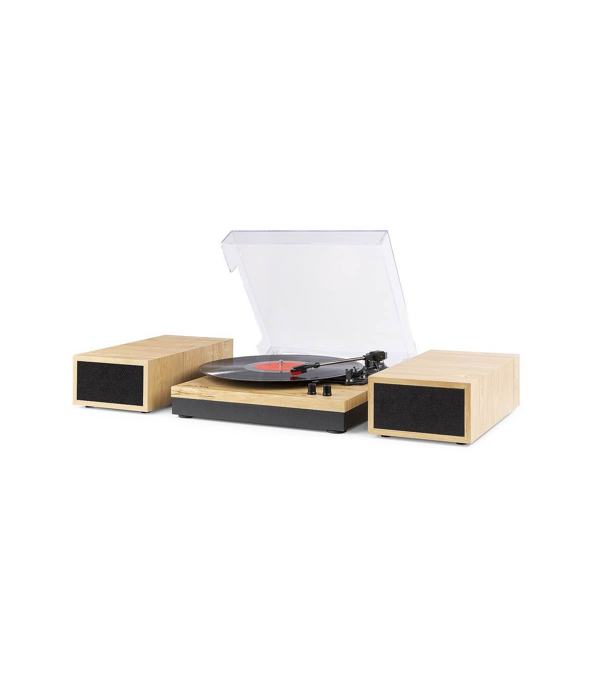 Il giradischi Fenton RP165 con amplificatore integrato è elegantemente semplicistico nel design. Ascolta i tuoi dischi in vinile con un suono ottimale regolando il volume sui due altoparlanti inclusi. Questi doppi altoparlanti stereo da 50 watt riproducono la musica da un giradischi a 3 velocità (33 1/3, 45, 78 giri/min) o dalla tecnologia BT integrata per riprodurre musica in streaming in modalità wireless da qualsiasi dispositivo abilitato BT.
