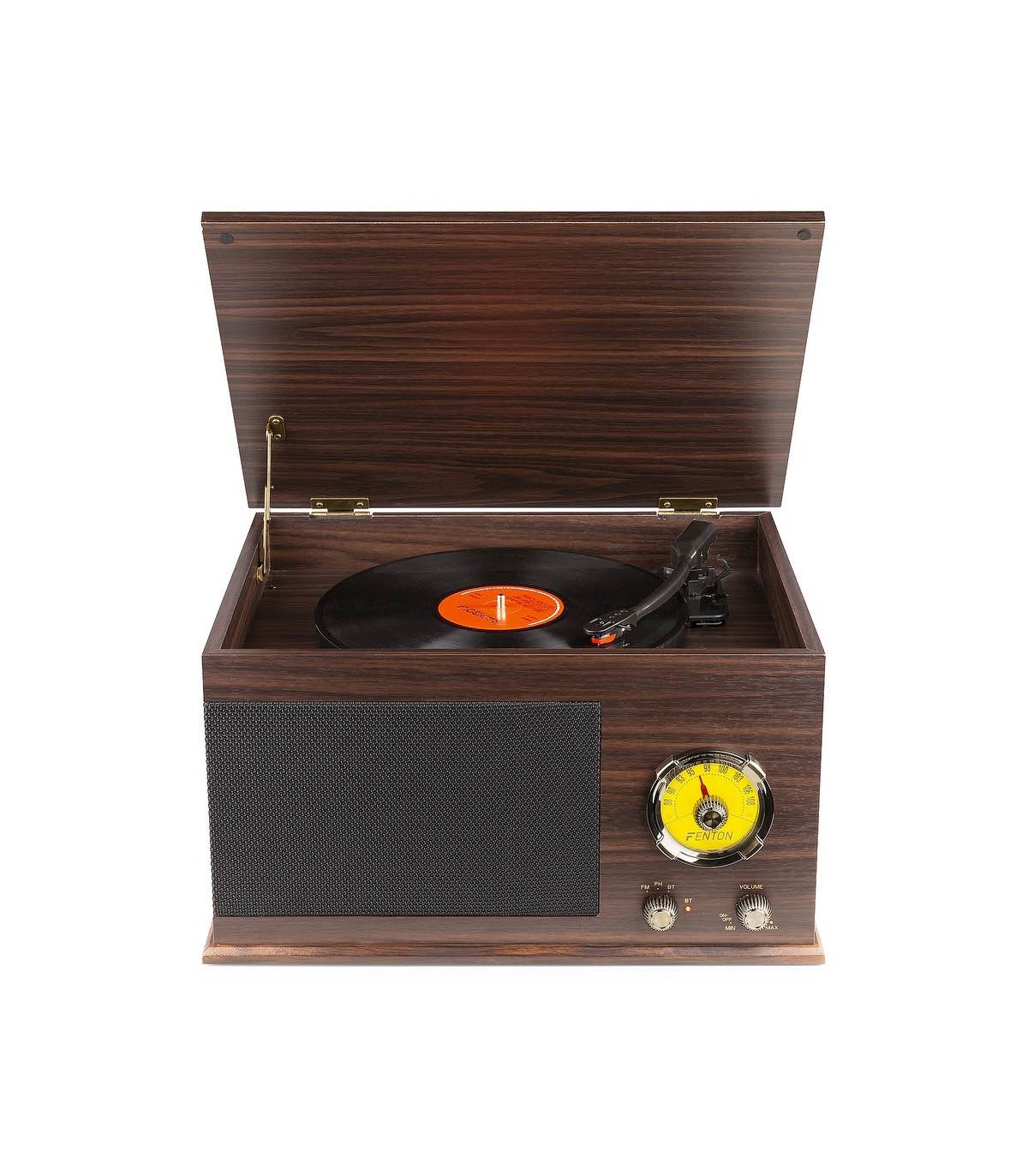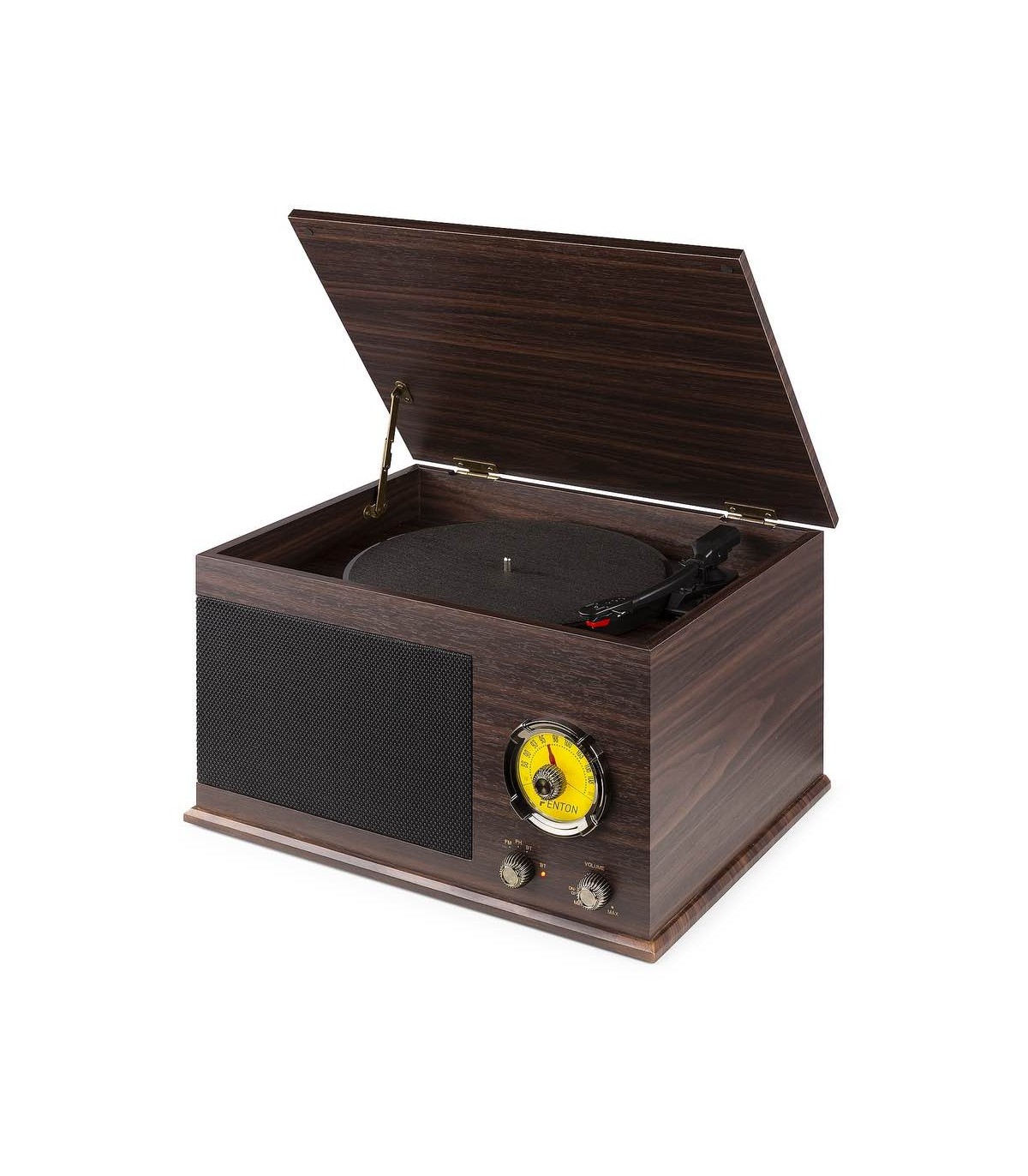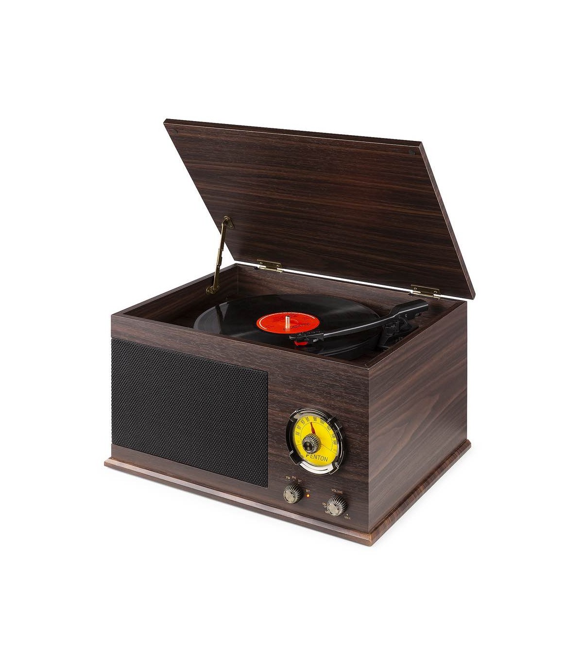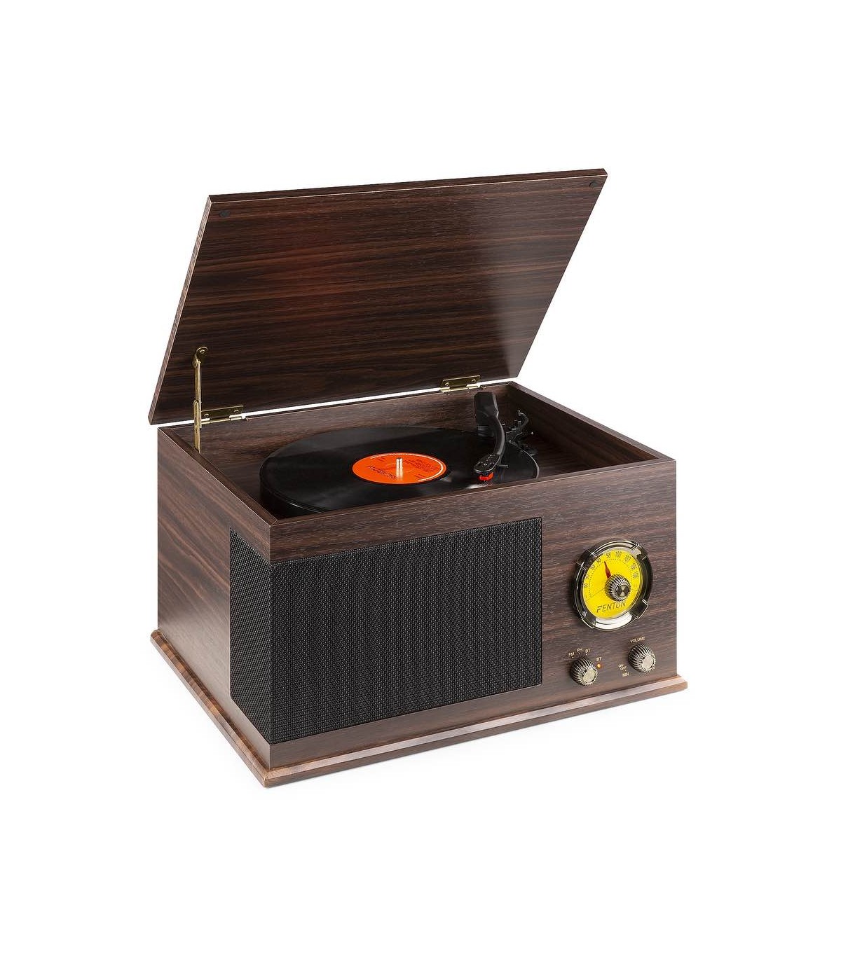 Ascolta il tuo vinile preferito con questo autentico giradischi dal design vintage completato da un'impiallacciatura in legno scuro. Questo versatile giradischi in vinile supporta 3 velocità di riproduzione (33 1/3, 45 e 78 RPM) consentendo di riprodurre quasi tutti i dischi in vinile. È dotato di altoparlanti integrati, uscita AUX e ricevitore radio FM integrato per sintonizzarsi sulla tua stazione radio preferita. Questo giradischi è dotato di tutte le funzionalità moderne che ti aspetti; un lettore multimediale BT integrato per lo streaming di musica wireless, retroilluminazione gialla nostalgica e una funzione di arresto automatico. Tutto l'aspetto dello stile retrò combinato con il suono moderno e di alta qualità, questo favoloso giradischi diventerà sicuramente il fulcro di ogni stanza. Usa la porta USB per convertire il tuo vinile in MP3 tramite il tuo pc con il software in dotazione.