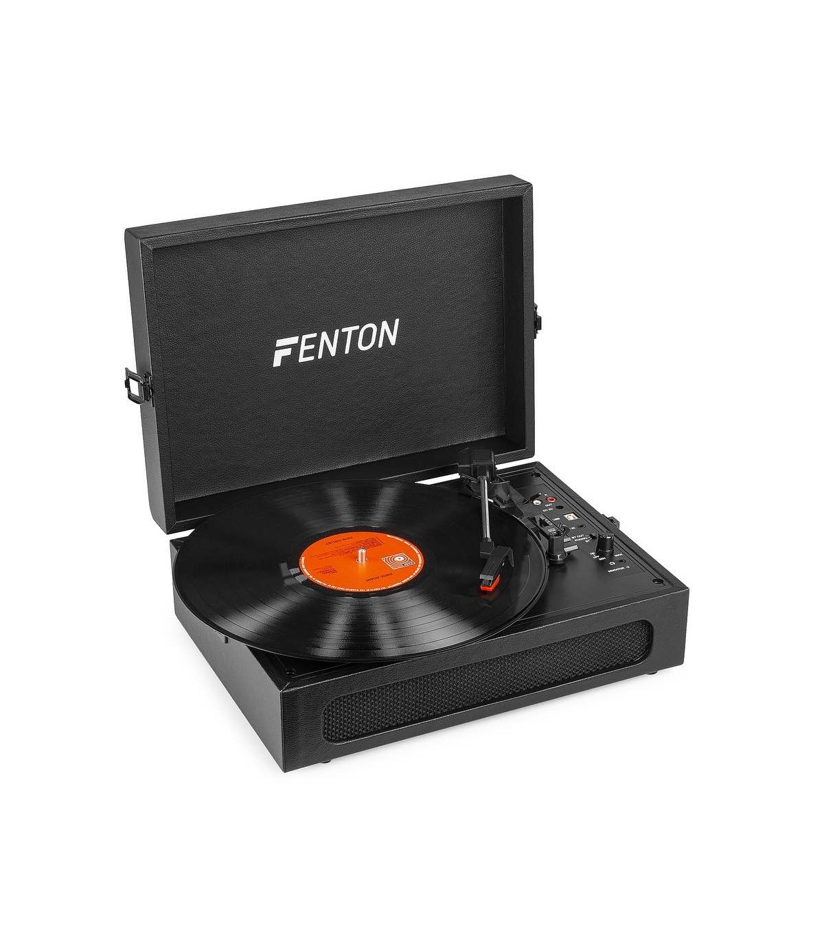 Goditi il suono autentico del vinile e riproduci tutti i migliori dischi utilizzando questo giradischi Fenton RP118. Il giradischi a tre velocità può riprodurre dischi a 33, 45 e 78 giri e ha una moderna finitura in pelle PU con un design comodo e leggero che lo rende facilmente trasportabile in modo da poterlo portare con te ovunque tu vada. Si collega in modalità wireless agli altoparlanti , cuffie e altri dispositivi dotati di tecnologia wireless BT o a sistemi audio cablati e altoparlanti amplificati. Con il ricevitore BT integrato, la musica digitale può anche essere trasmessa in streaming wireless da uno smartphone, tablet PC o altro dispositivo compatibile BT e può essere ascoltata tramite gli altoparlanti stereo.