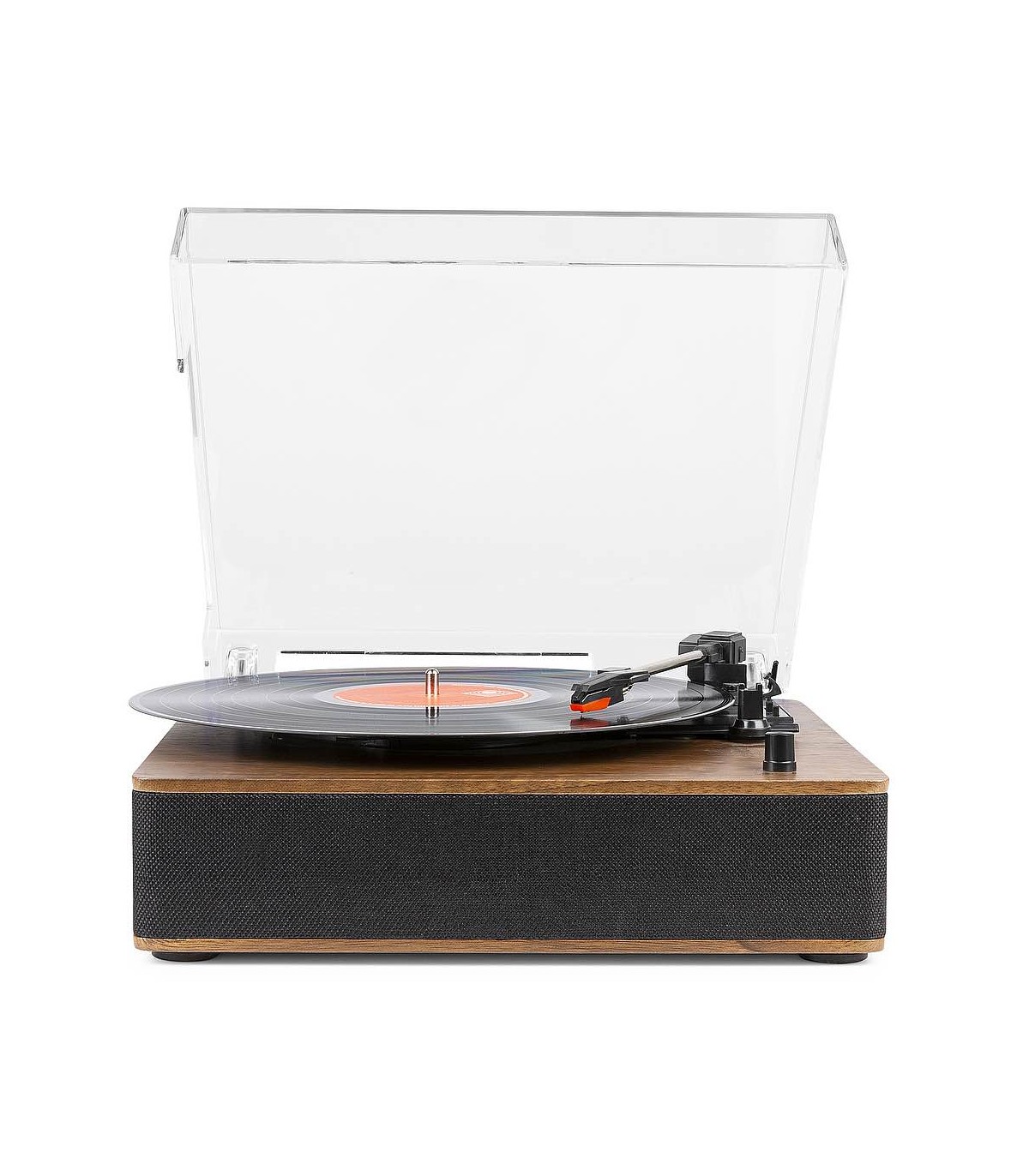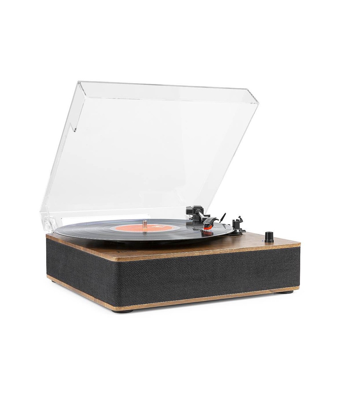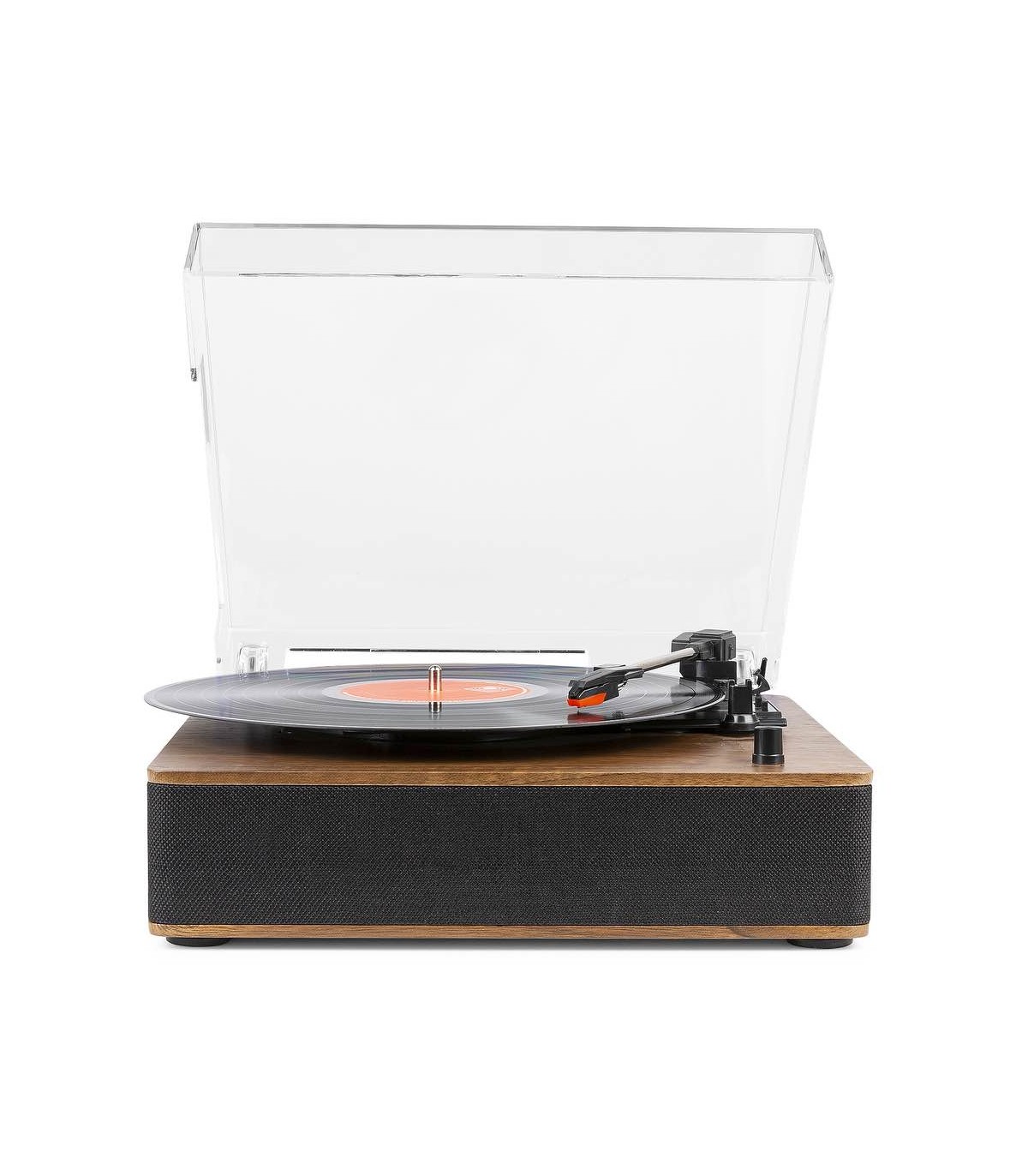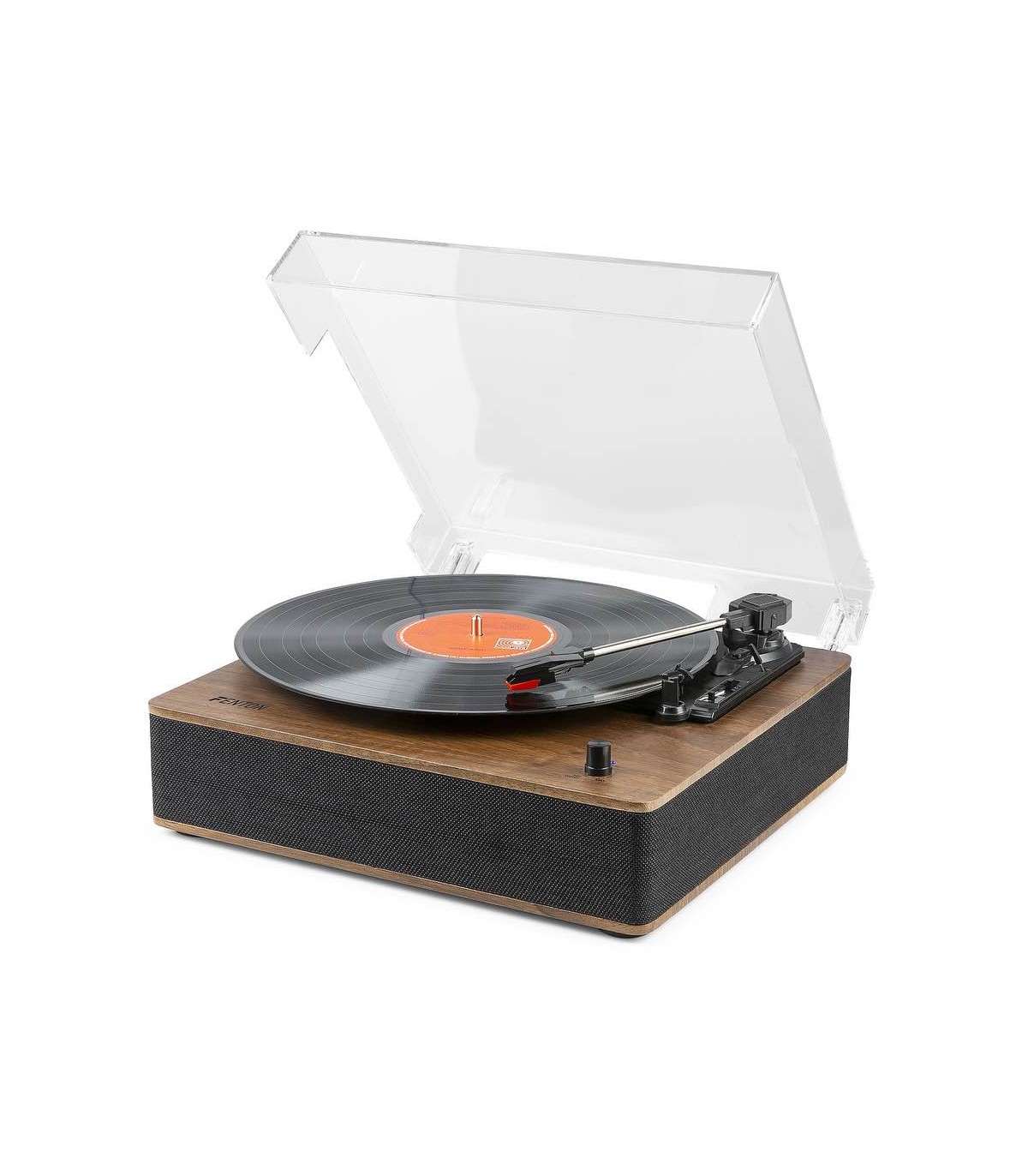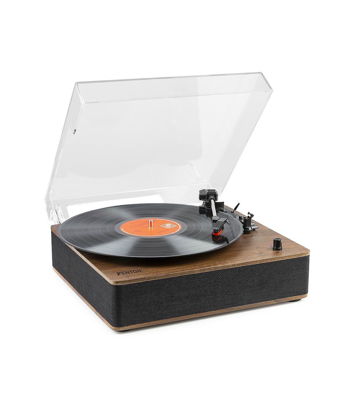 Goditi il suono autentico del vinile e riproduci tutti i migliori dischi utilizzando questo giradischi Fenton RP161 fornito con due altoparlanti stereo full range. Con il ricevitore BT integrato, la musica digitale può anche essere trasmessa in streaming in modalità wireless da uno smartphone, tablet PC o altro dispositivo compatibile con BT e può essere ascoltata dagli altoparlanti stereo. Questo giradischi di alta qualità ha un solido alloggiamento in legno fatto a mano ed è dotato di un coperchio antipolvere trasparente rimovibile. L'RP161 è di dimensioni compatte, quindi puoi portarlo facilmente ovunque.