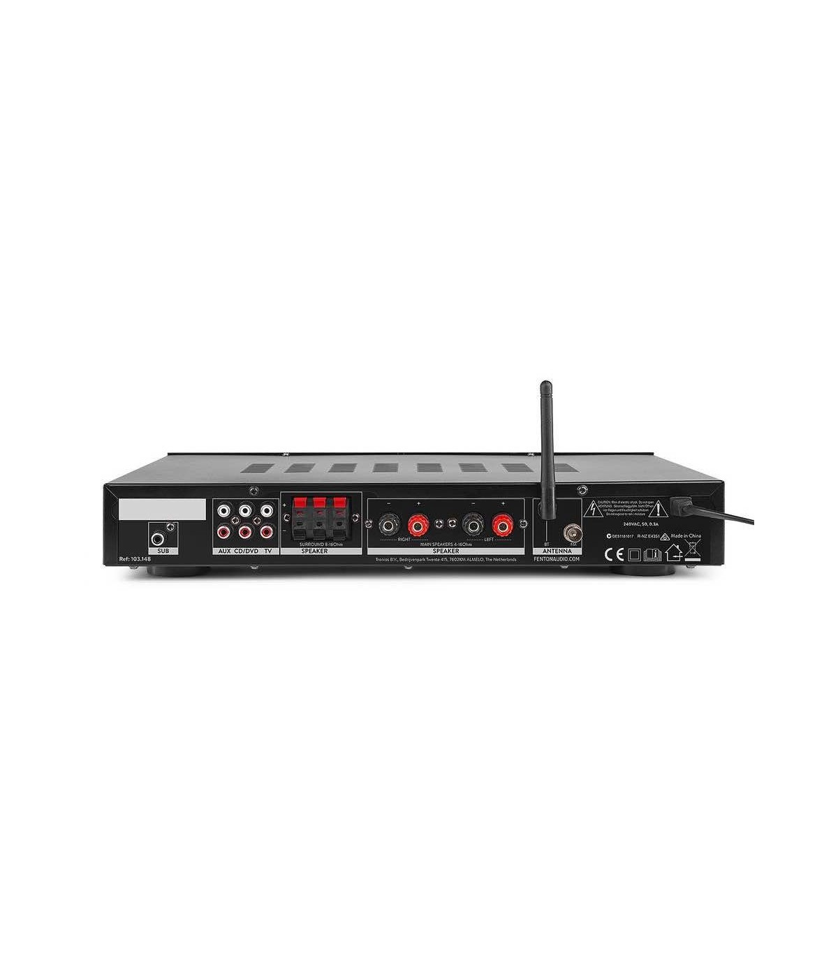 Il sistema home theater AV150BT è la migliore soluzione per tutte le tue esigenze audio! Questo sistema all-in-one è dotato della tecnologia wireless 2.1 BT e funziona con tutti i dispositivi più recenti, inclusi smartphone, tablet, laptop e computer. Goditi il dolce suono in streaming dalla tua raccolta di musica digitale personale. L'AV150BT è un amplificatore multifunzione e dispone di slot per schede USB e SD, oltre a un jack di ingresso aux da 3,5 mm e diversi connettori di ingresso audio RCA. Perfetto per l'uso a casa, in ufficio o in negozio e anche per installazioni professionali.