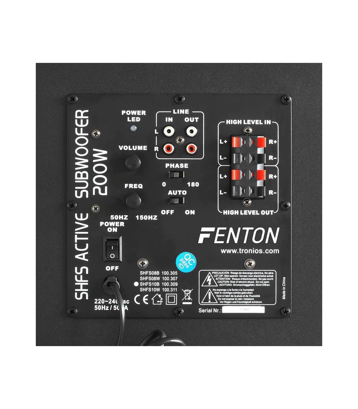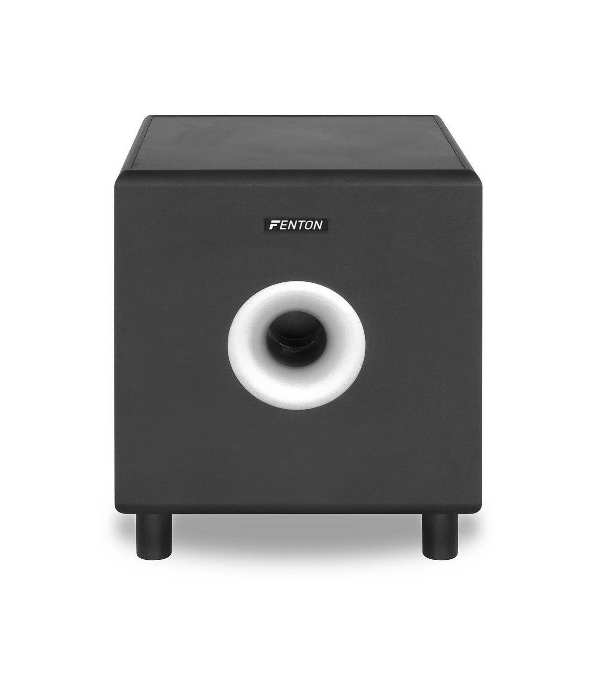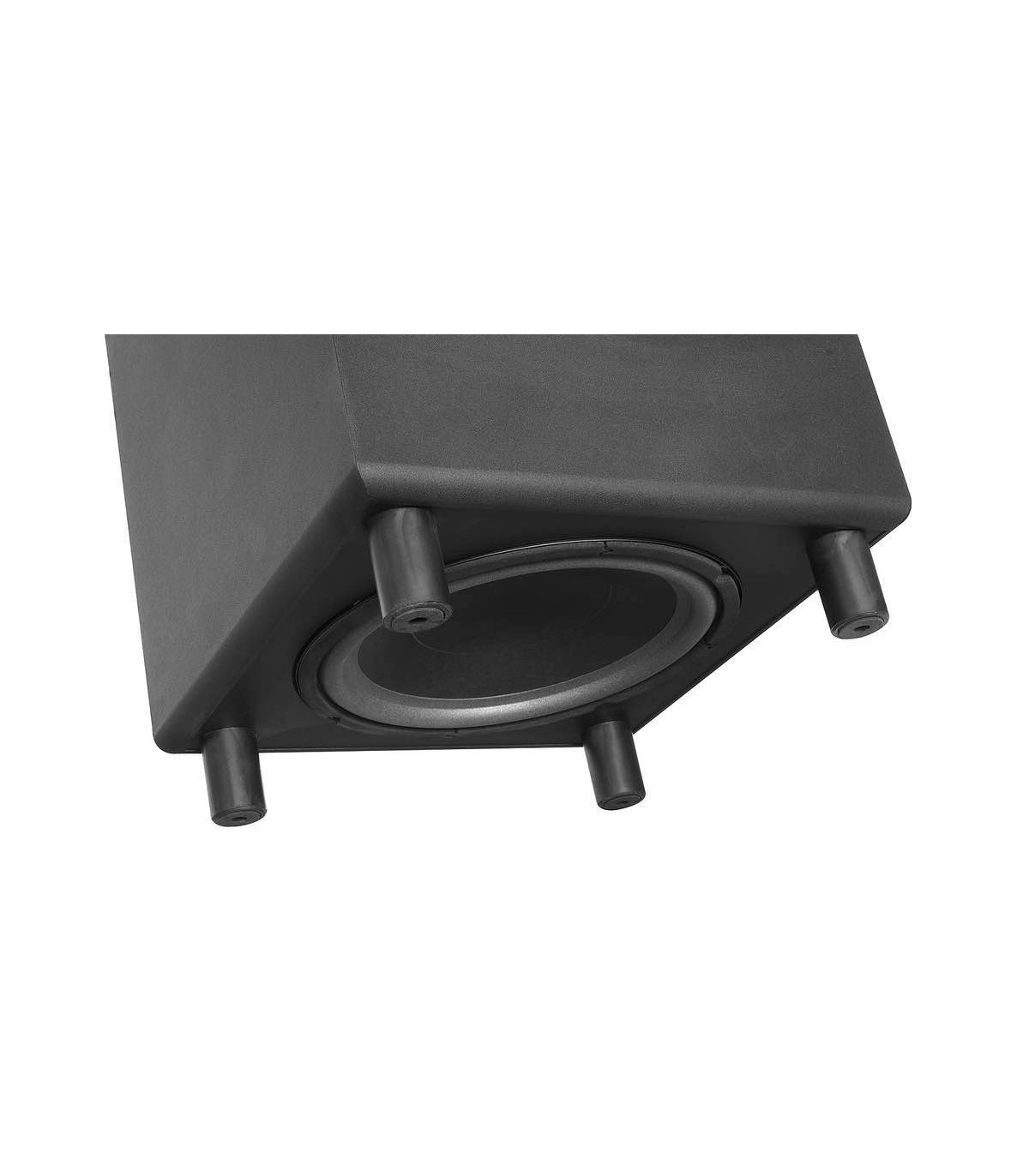 Attraverso il downfiring (il subwoofer è sul fondo) questo subwoofer, con un range di frequenza di 20-200 Hz, produce più bassi. La frequenza di crossover è regolabile tra 50 e 150 Hz. Il subwoofer si occupa delle frequenze al di sotto del valore di frequenza impostato e quindi diminuisce lo sforzo degli altri elementi del sistema. La fase è regolabile tra 0 o 180;. Gli input stereo RCA o i terminali per speaker possono essere connessi ad un ricevitore o amplificatore. Il subwoofer ha 4 gambe di supporto.