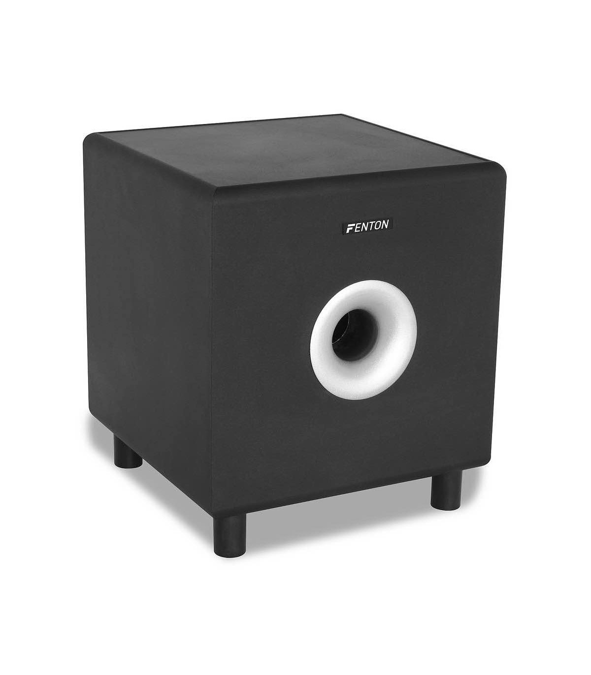 Attraverso il downfiring (il subwoofer è sul fondo) questo subwoofer, con un range di frequenza di 20-200 Hz, produce più bassi. La frequenza di crossover è regolabile tra 50 e 150 Hz. Il subwoofer si occupa delle frequenze al di sotto del valore di frequenza impostato e quindi diminuisce lo sforzo degli altri elementi del sistema. La fase è regolabile tra 0 o 180;. Gli input stereo RCA o i terminali per speaker possono essere connessi ad un ricevitore o amplificatore. Il subwoofer ha 4 gambe di supporto.