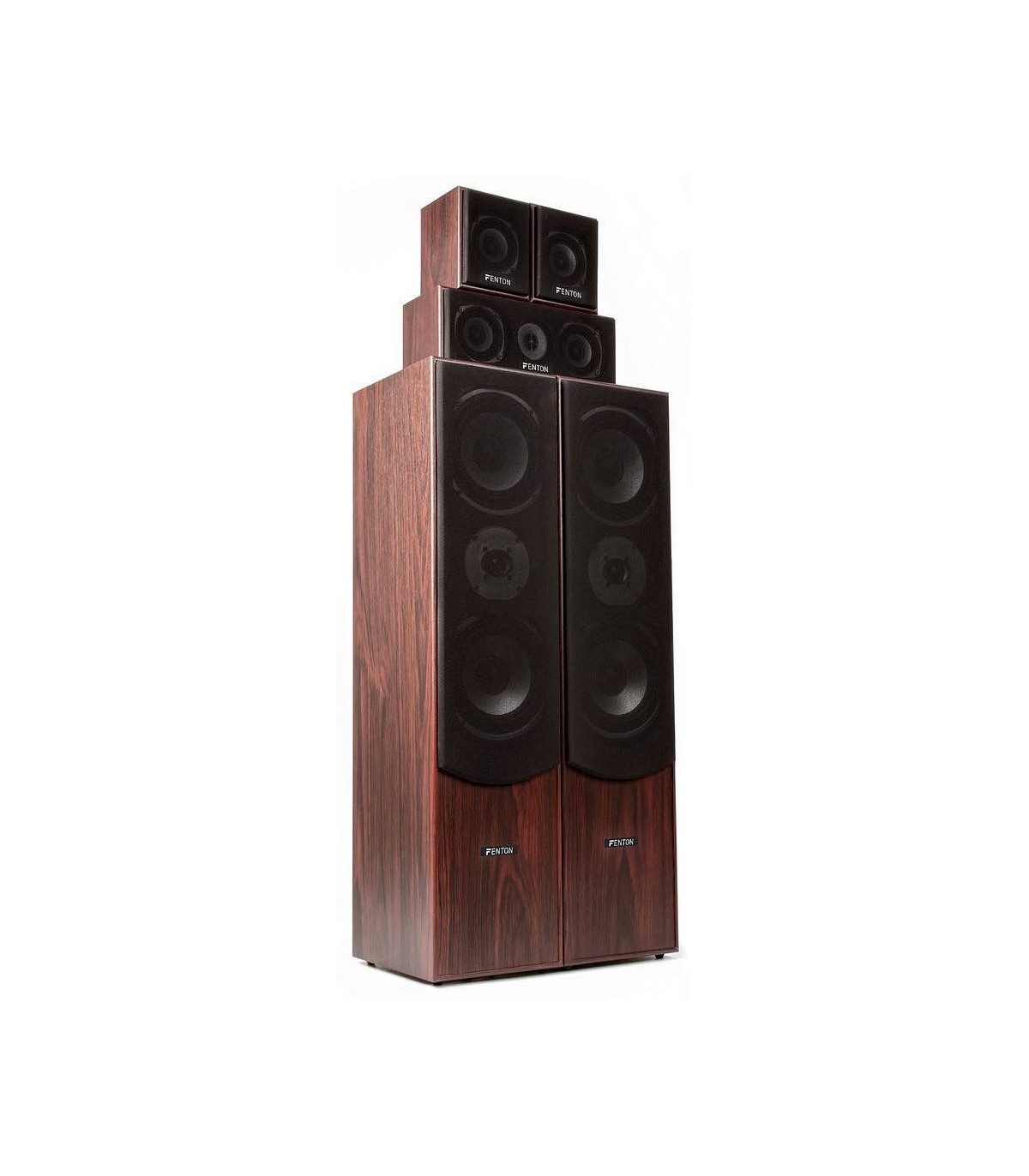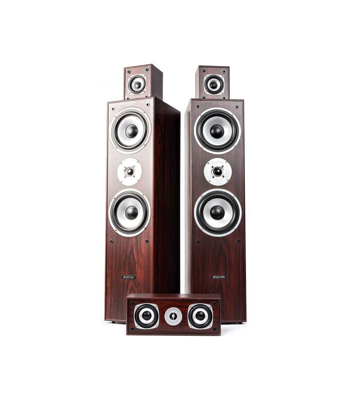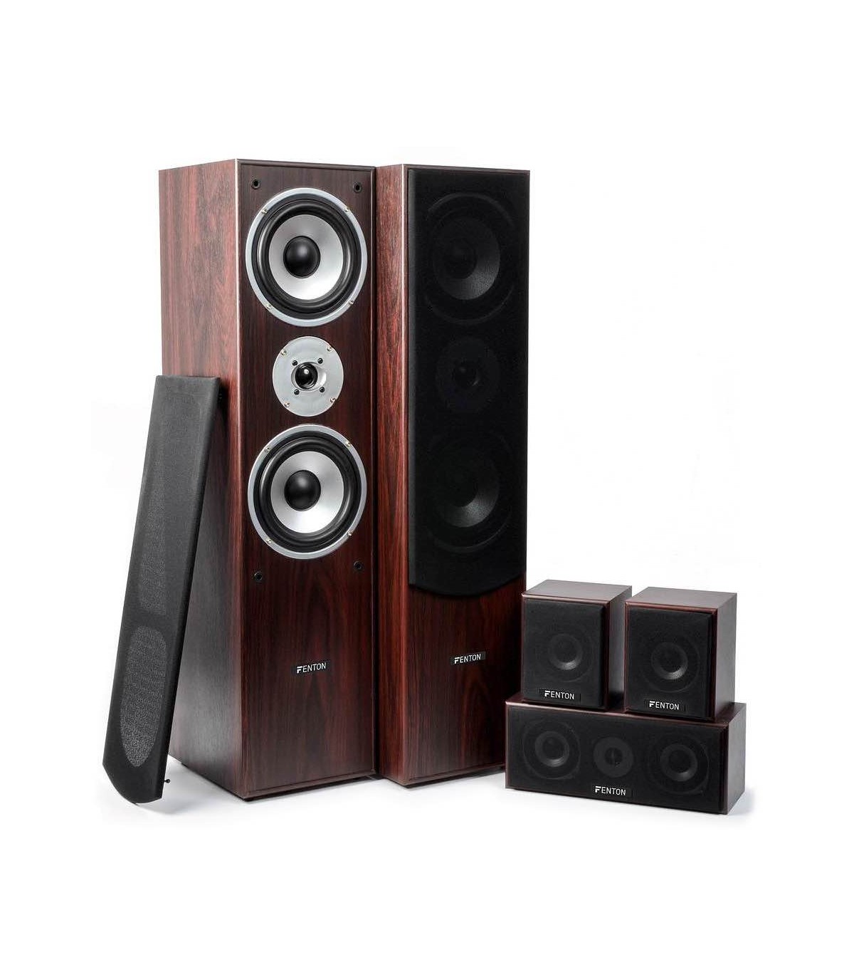 I due sistemi a torre frontali a 3 vie, assieme al diffusore centrale a 3 vie e ai due diffusori posteriori forniscono un totale di 335W RMS e offrono un a grande esperienza home-cinema. Gli altoparlanti montati uniti alle grandi caratteristiche permettono il formidabile suono di questo set. Il kit nero è fornito con cavi per altoparlanti ed è facile da collegare al tuo amplificatore surround. I due diffusori satelliti sono installabili a muro.