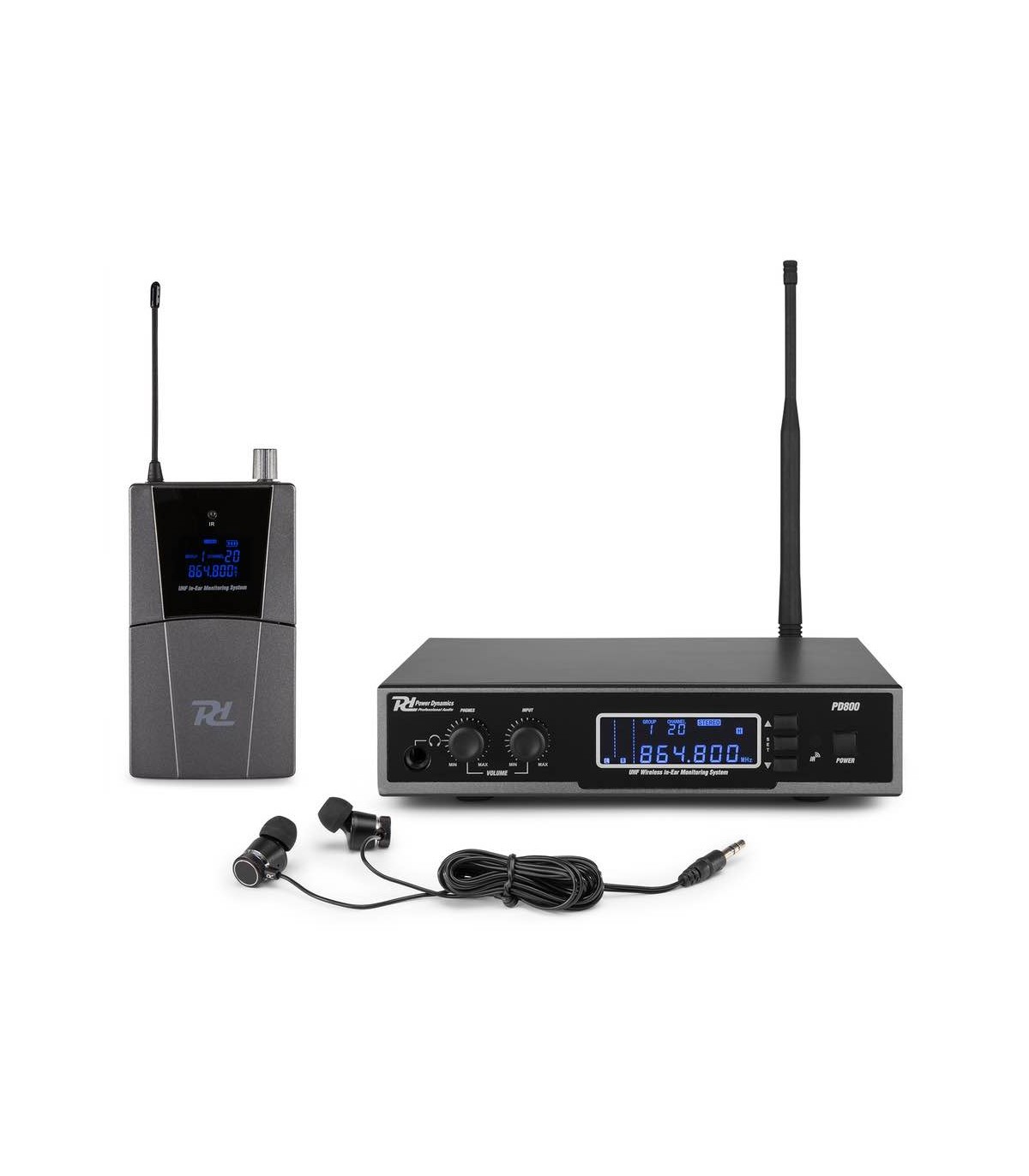 Il PD800 con un ottimo rapporto qualità-prezzo, offre un suono eccezionale nel sistema di monitoraggio In Ear (IEM), progettato per le performance sul palco e il broadcast. Usando le frequenze wireless UHF aggiornate, i musicisti possono muoversi liberamente sul palco, ascoltando chiaramente se stessi e senza causare danni all'udito grazie ai potenti altoparlanti a soffietto. Il set è dotato di un display LCD retroilluminato di facile lettura sia sul ricevitore che sul trasmettitore e viene fornito con un auricolare isolato. È anche possibile utilizzare i propri auricolari personalizzati. Perfetto per batteristi, tastierista, chitarrista, cantante e altri artisti.
