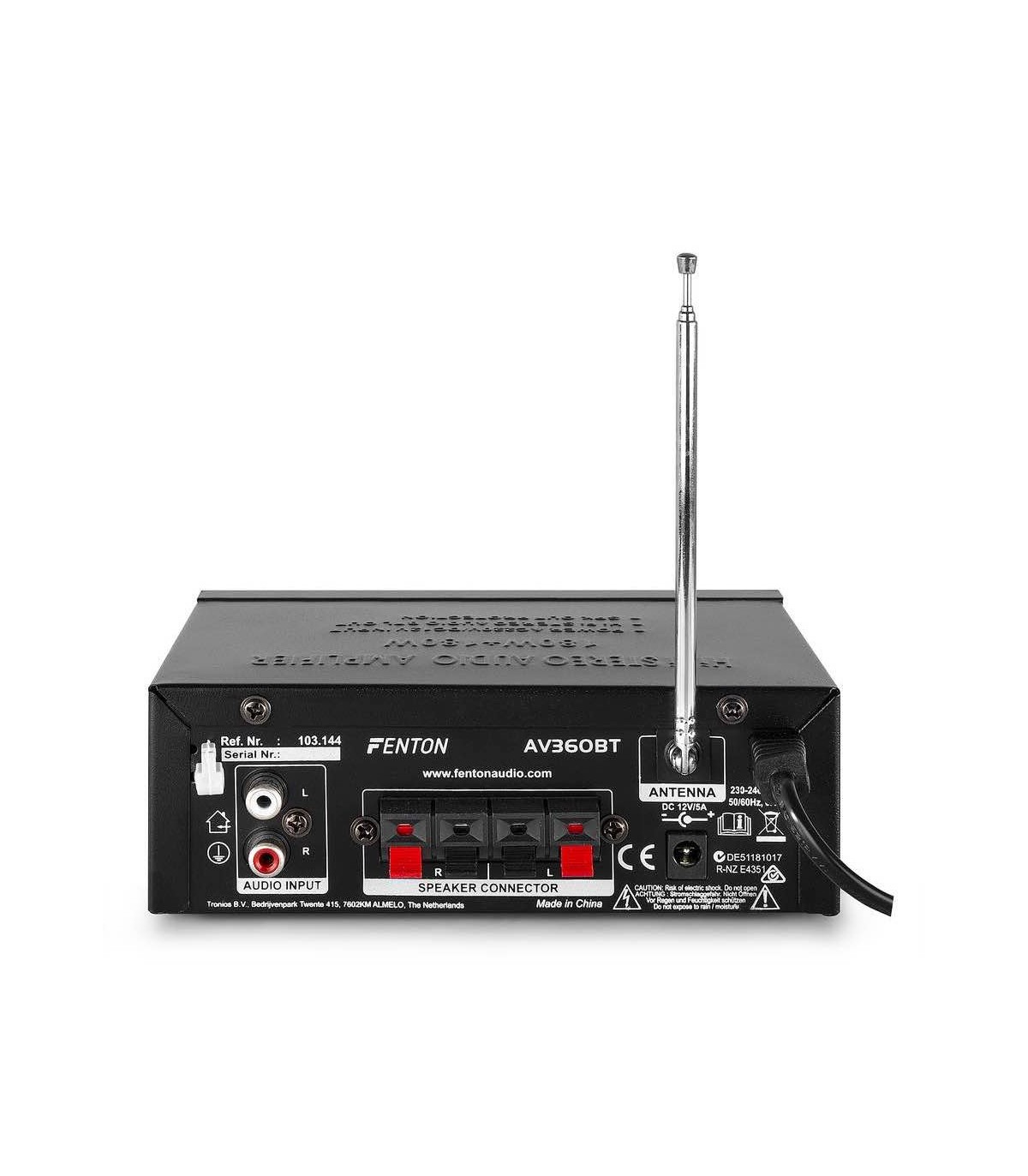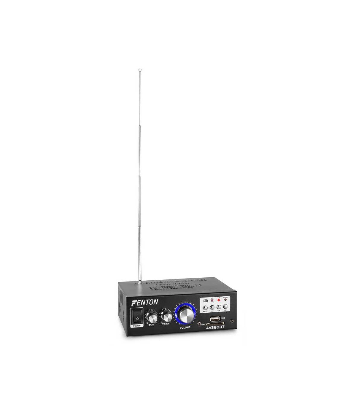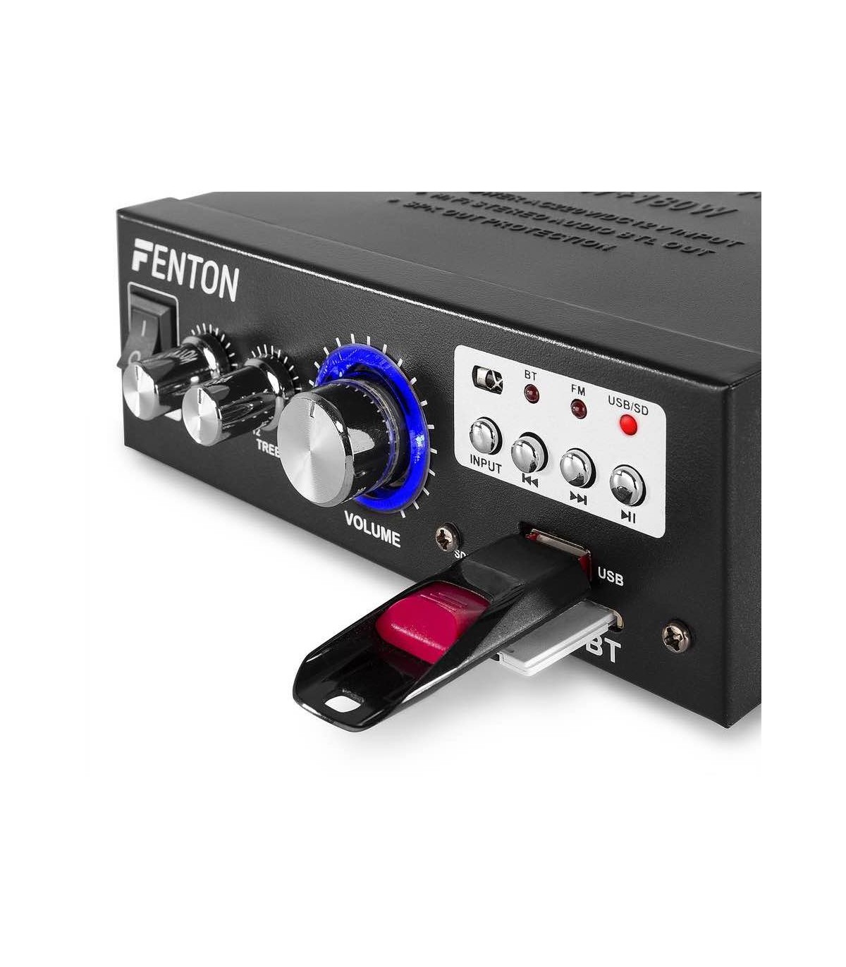 - Amplicatore 2x 40W Lettore MP3 con porta USB e slot per SD Ricevitore BT per streaming audio Alimentazione esterna