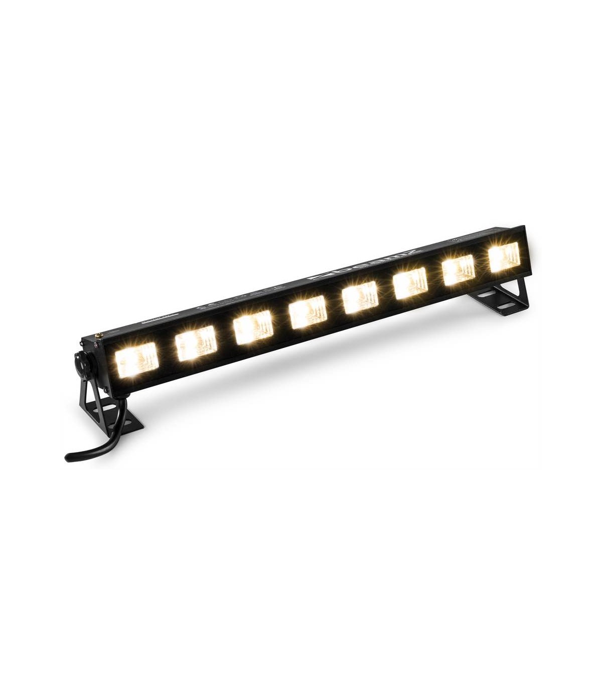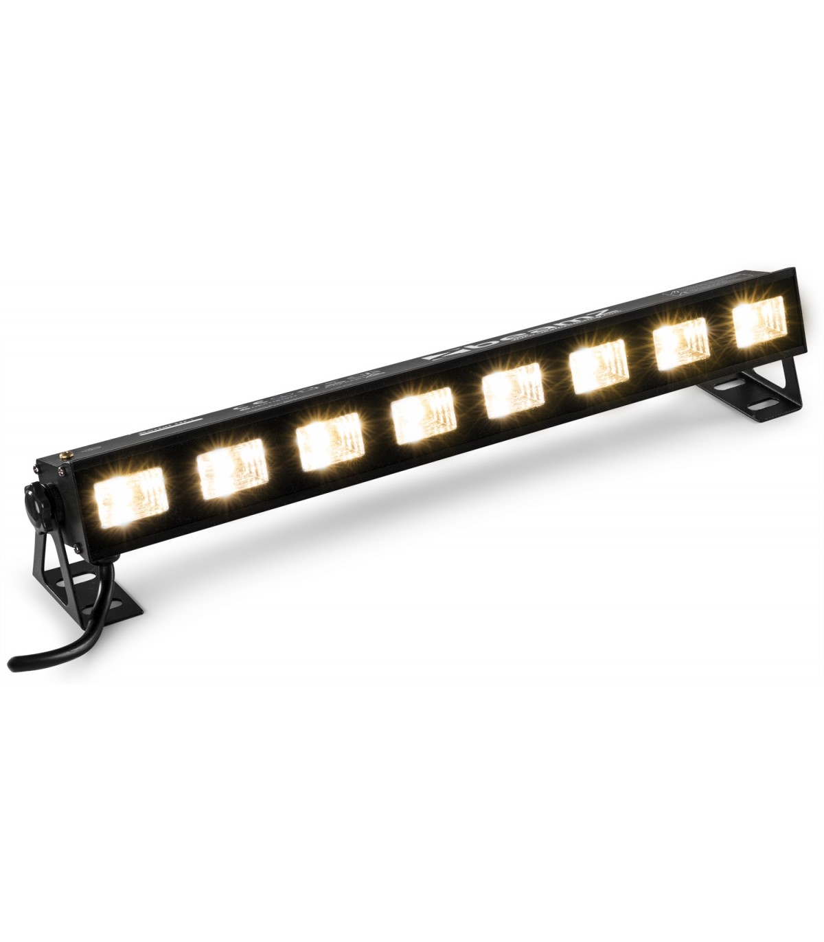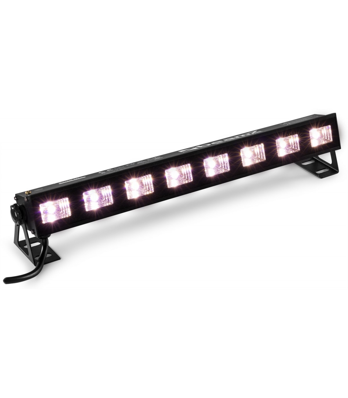 Il BUV83 è un potente apparecchio con LED UV e bianco caldo in grado di coprire ampi spazi. Con il suo design a basso profilo si presta ad essere installato quasi in ogni caso immaginabile. Poiché l'unità è alimentata da LED, a sua volta diventa un'unità molto leggera che può essere facilmente trasportata da un concerto all'altro per i DJ set mobili. Il BUV83 è alimentato da 8 LED 3W UV / White con un consumo energetico totale di soli 30W. Il BUV83 è per l'uso di wash ini palchi, discoteche, Bowling Center, Roller Rink e Fun Center con luce ultravioletta o bianca.