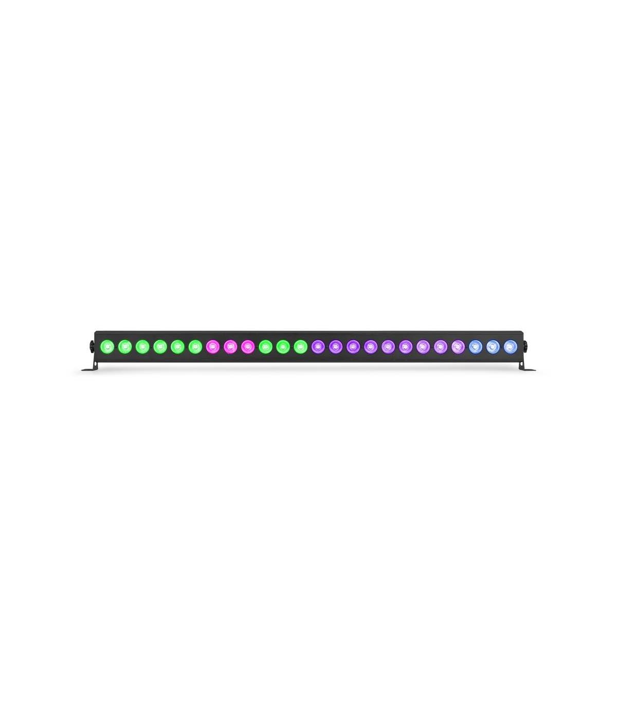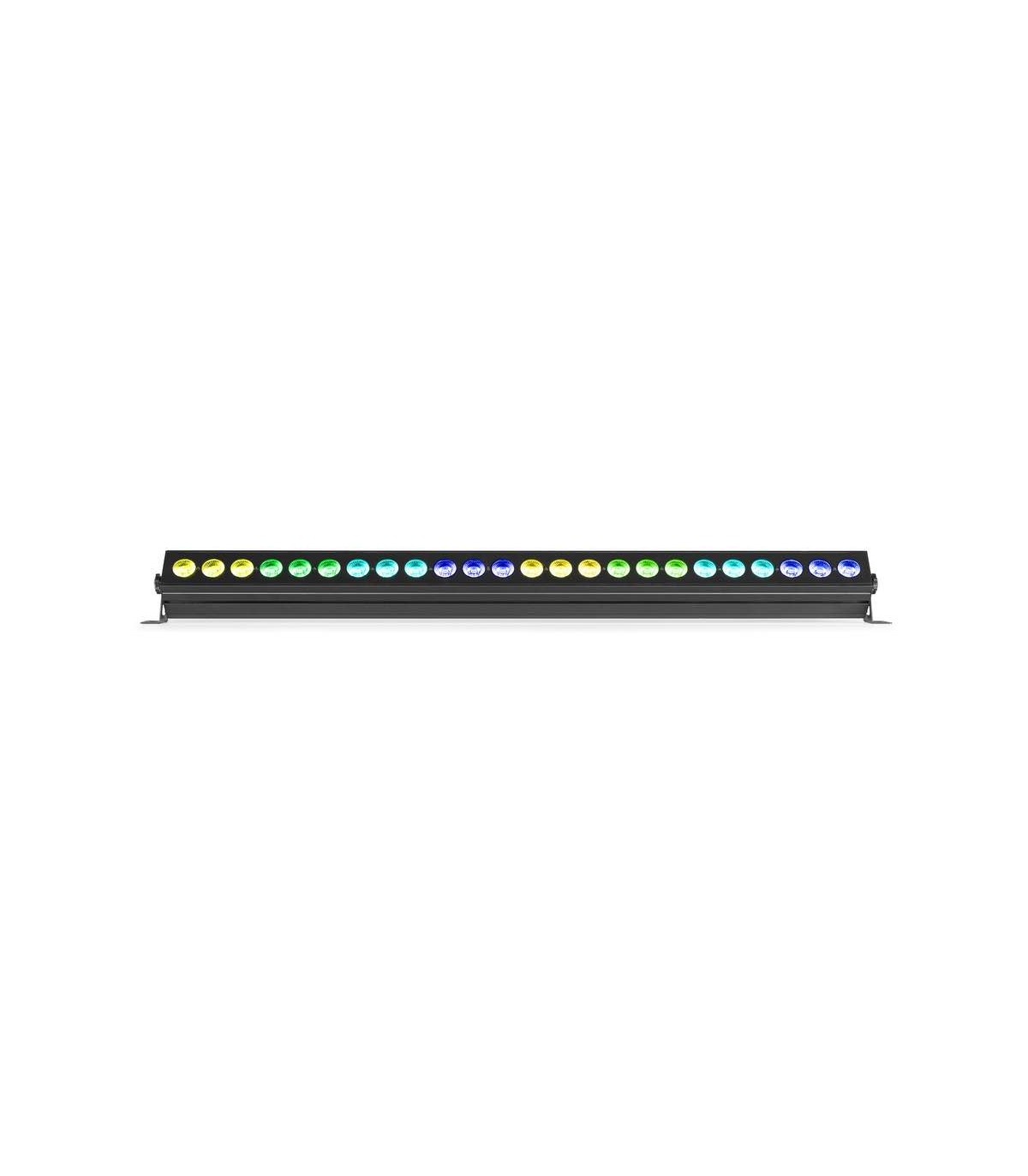 LCB246 è una barra LED dotata di 24 LED RGBAW-UV da 6 W. I LED sono divisi in 8 sezioni controllabili singolarmente di 3 LED ciascuna. Durante l'utilizzo dell'apparecchiatura in modalità stand-alone, sono disponibili spettacoli pre-programmati che è possibile eseguire automaticamente o attivare il suono, scegliere tra le macro colore preimpostate o creare la propria miscela di colori in modalità RGBAW-UV. L'uscita di potenza extra consente di collegare semplicemente l'alimentazione di più unità insieme in un'unica presa.