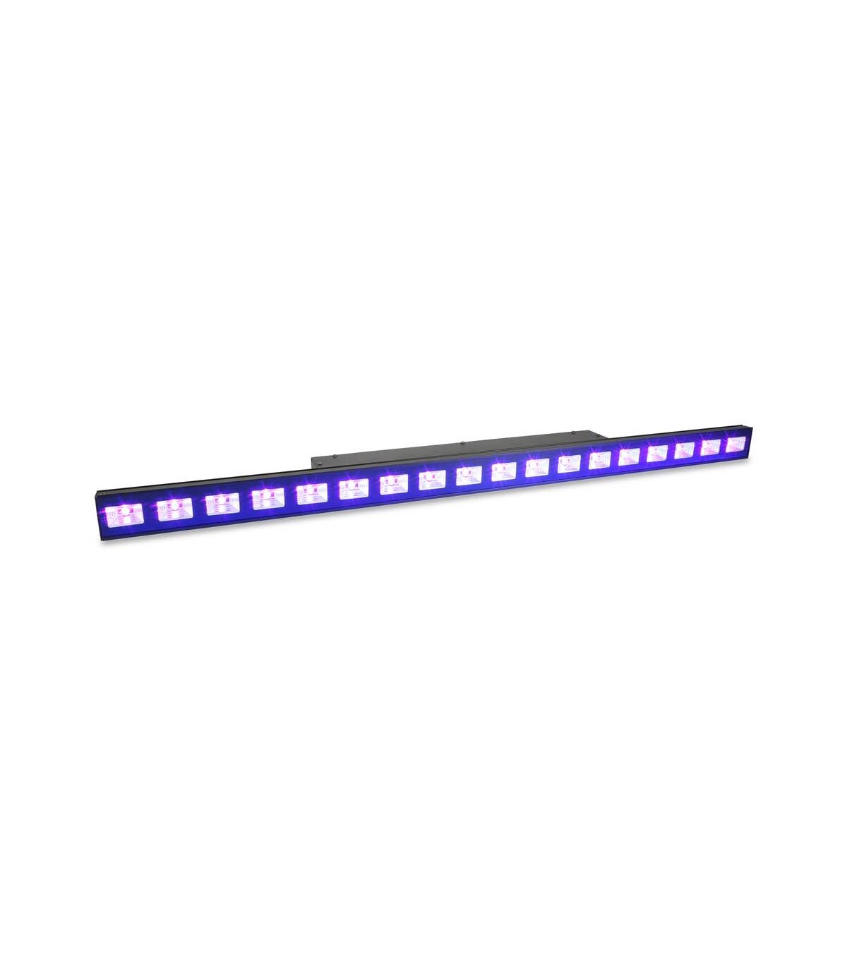 Una barra LED robusta e potente dotata di LED Ultravioletti. I LED sono suddivisi in 6 segmenti controllabili separatamente che danno la possibilità di creare effetti di pista. Dotato di ingresso / uscita IEC per collegare in cascata più unità.