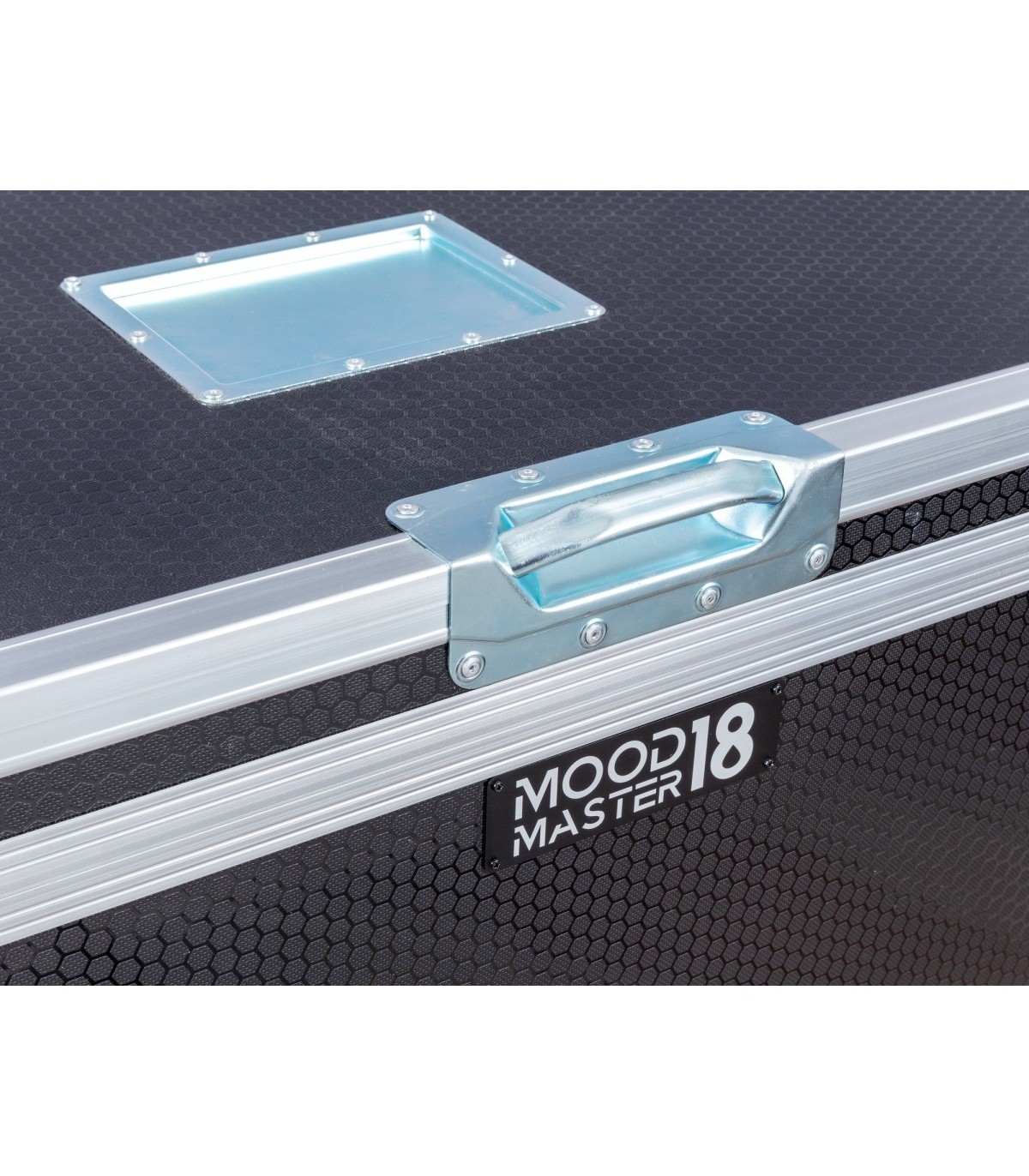 Flight case impilabile con ruote progettato per 4 unità Mood Master 18, dotato di ingresso di alimentazione principale, connessioni di alimentazione interne multiple e scomparti dedicati per cavi e accessori. Custodia robusta con scomparti personalizzati per 4 fari Mood master 18 Realizzati in Multiplex da 7 mm alta qualita' con finitura antigraffio Scomparto cavi e accessori integrato