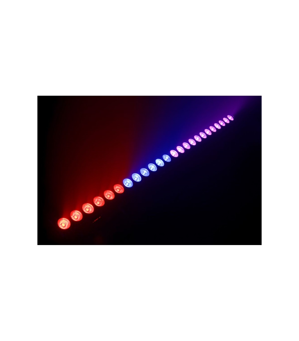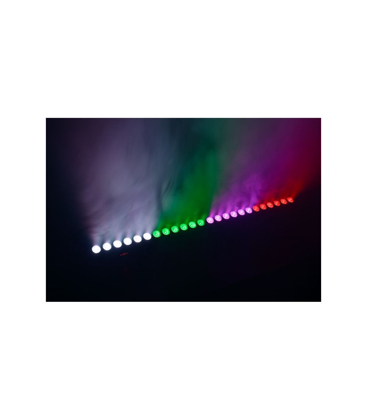 Il Barwash 244 è un elemento essenziale per l'illuminazione architettonica. Con i suoi 24 LED Wash RGBW 4W, offre colori vivaci e una luminosità impressionante. Grazie alle sue varie modalità operative, puoi creare atmosfere diverse e animazioni straordinarie. Molto robusto, è dotato di un'interfaccia di controllo completa con schermo LCD e pulsanti di regolazione, nonché di ingresso e uscita DMX.