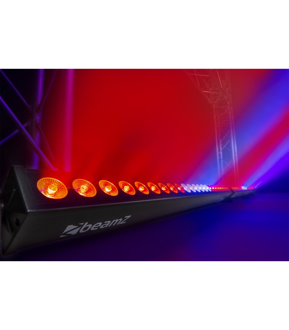 LCB244 è una barra a LED con LED RGB-4 in 1. L'unità è divisa in 8 sezioni controllabili separatamente. Mentre si utilizza l'apparecchio in modalità stand-alone, ci sono 12 spettacoli pre-programmati che è possibile eseguire automaticamente o attivare tramite suono, scegliere tra le macro colore pre-impostate o creare la propria miscela di colori in modalità RGBW. L'uscita IEC supplementare consente di collegare semplicemente la potenza di più unità in un'unica presa. Raffreddamento a convezione per funzionamento silenzioso.