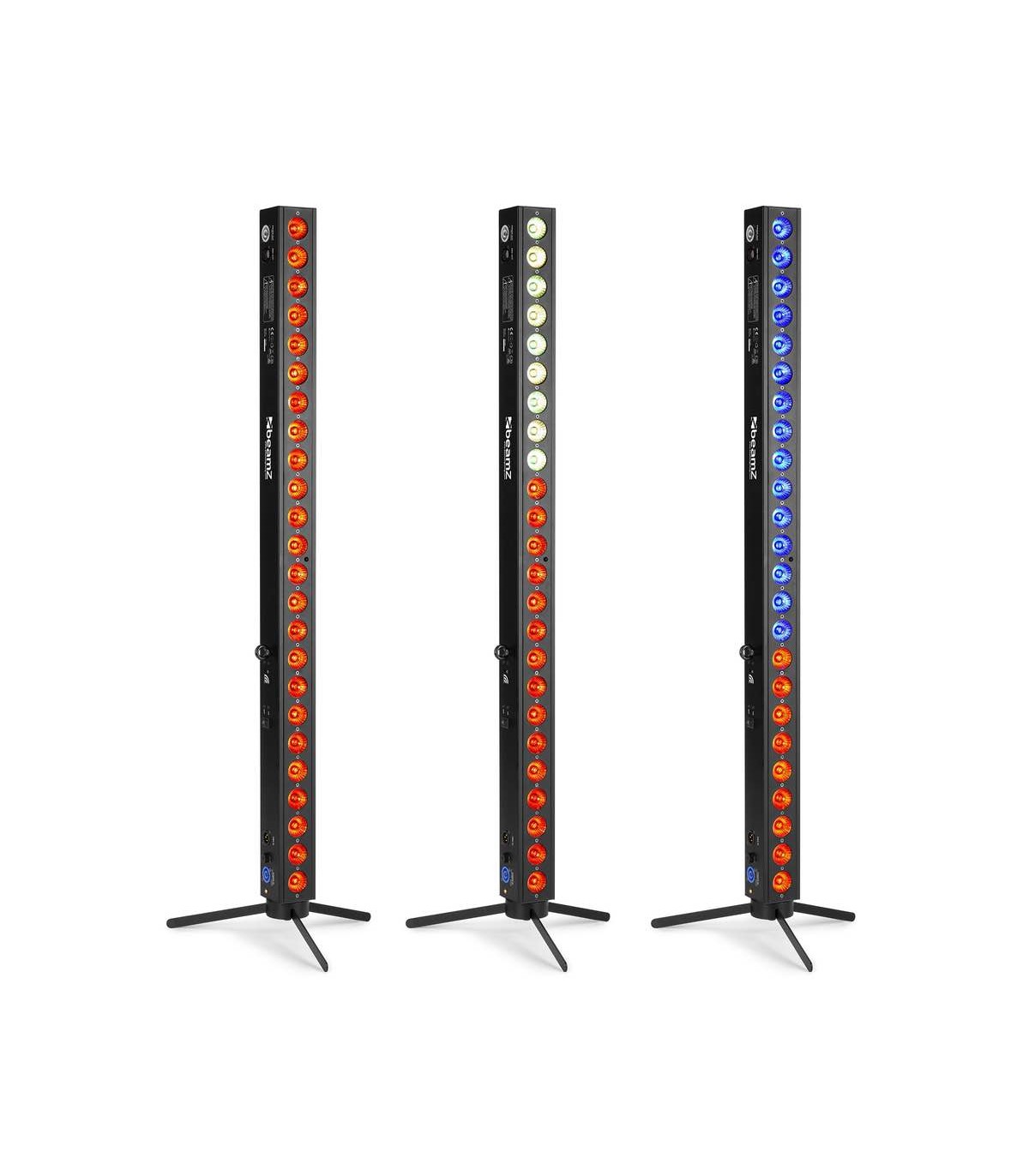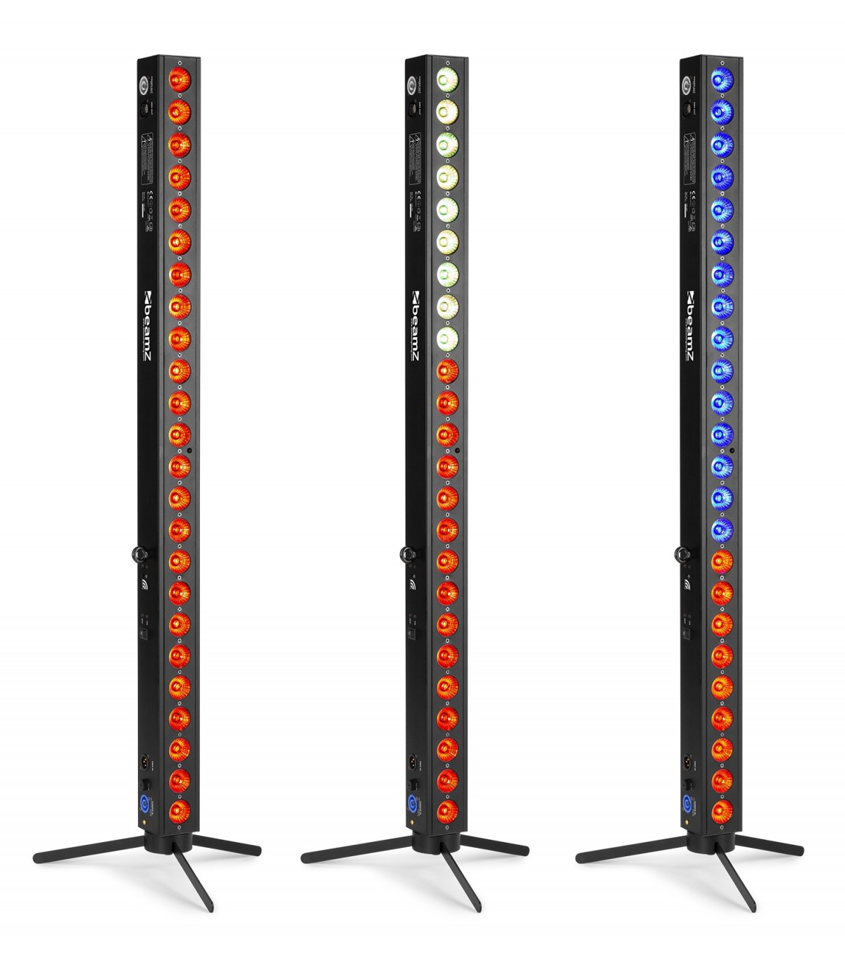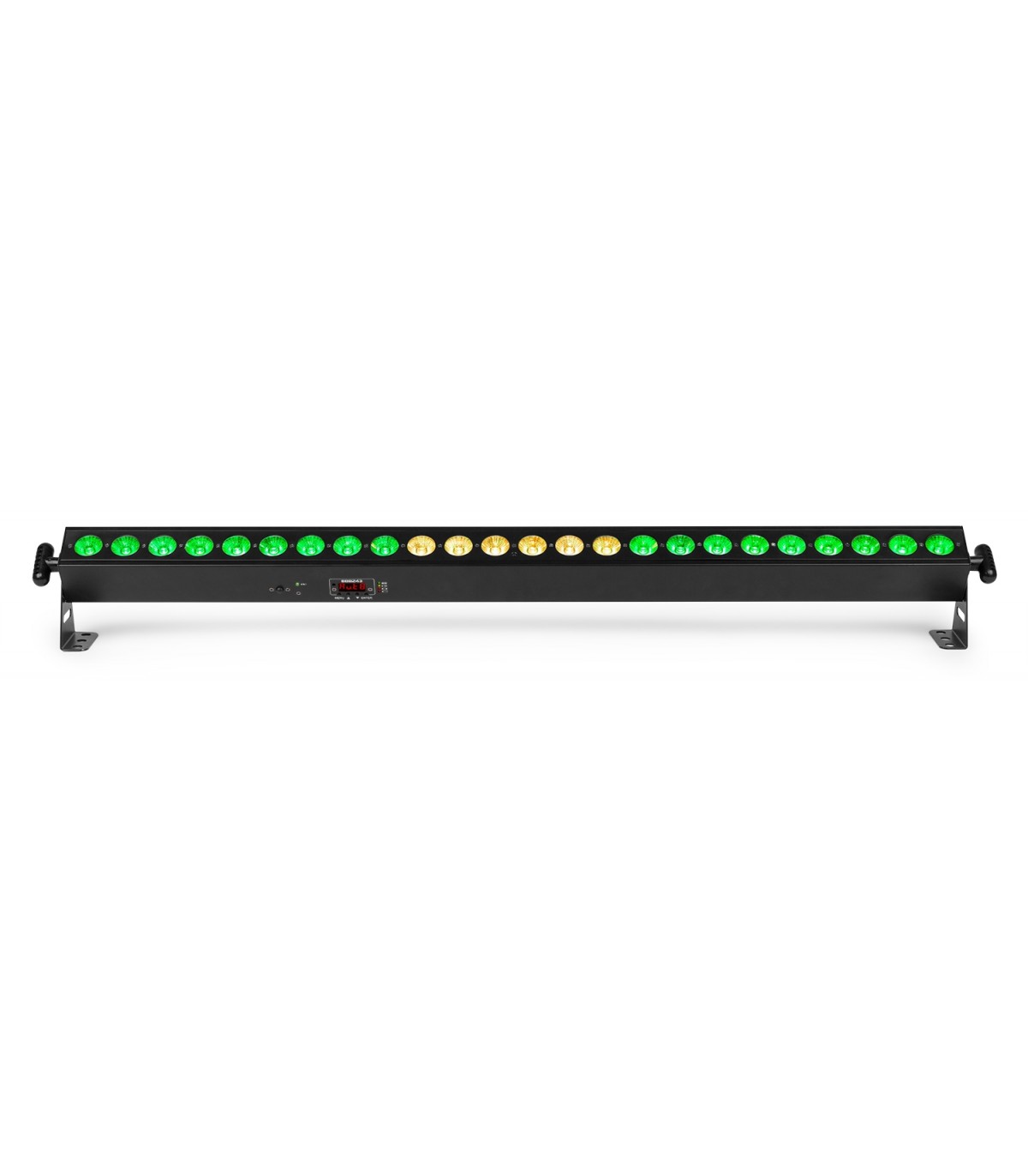 BBB243 è una barra LED compatta e leggera ricaricabile alimentata a batteria al litio che offre un'ampia gamma di miscelazione dei colori RGB per il Wash di palchi o pareti, con la libertà di configurare il dispositivo in qualsiasi momento, senza problemi di cavi. La batteria al litio incorporata manterrà una carica fino a 10 ore (a singolo colore) da una carica completa singola. Può anche essere collegato alla rete elettrica con il cavo incluso per una carica illimitata. Il BBB243 può essere utilizzato in diversi modi: utilizzare uno dei suoi programmi automatici, modalità musica o modalità DMX (e wireless DMX). Ideale per l'uso in spazi ristretti, su palchi, ristoranti e Bar.