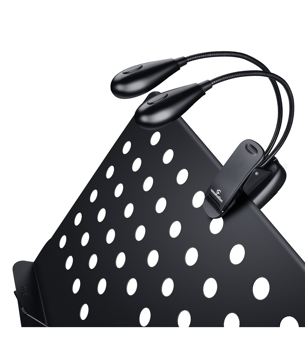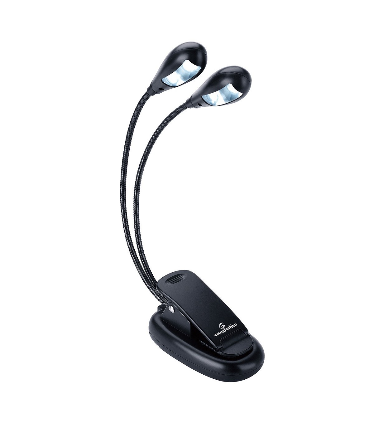 Lampada aggiustabile con doppio collo flessibile dotata di due bulbi a doppio LED e clip per un montaggio facile e sicuro. Ottima illuminazione garantita dai 4 LED e doppia alimentazione batteria/cavo USB.