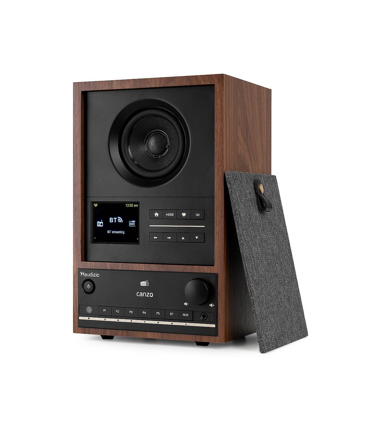 Scopri le eccezionali prestazioni audio del sistema musicale digitale Canzo. Dotato di un altoparlante ad alto rendimento, questo sistema ti consente di ascoltare tutti i tipi di generi musicali trasmessi in streaming da varie fonti online. Connettiti rapidamente e facilmente tramite LAN o Wi-Fi e accedi a oltre 32.000 stazioni radio Internet. Il Canzo include anche la radio digitale (DAB+), una radio FM e uno schermo a colori nascosto con unità di controllo dietro il pannello frontale rimovibile. Grazie al ricevitore streaming BT integrato, puoi connettere facilmente il tuo iPhone, iPad o dispositivi Android compatibili per riprodurre in streaming in modalità wireless la tua musica. Questo sistema musicale all'avanguardia è perfetto per qualsiasi soggiorno, cucina, camera da letto o ufficio.