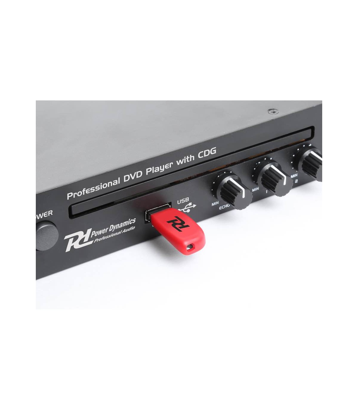 PDC150 è un lettore DVD da 19 "con supporto CD + G per karaoke. Le sue dimensioni 1U consentono di inserire il lettore all'interno di installazioni esistenti. Le numerose uscite consentono la facile installazione sullo schermo e sull'amplificatore in uso. Per il karaoke , sono presenti 2 ingressi per microfono con funzionalità di regolazione dell'eco. È possibile controllare il lettore tramite il telecomando in dotazione.