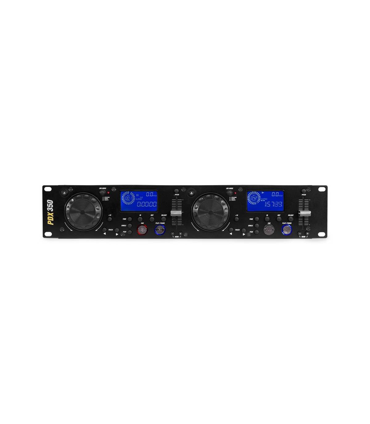 Il PDX350 è un doppio lettore CD / MP3 / USB che offre grandi funzionalità come Anti-Shock utilizzando la memoria buffer RAM, loop continuo su ogni lettore con funzione Reloop e un bell'aspetto da abbinare. L'ampio display LCD con retroilluminazione blu ti offre una vista superba con tutte le informazioni di cui hai bisogno. Il PDX350 ha anche jog wheel in gomma a tripla funzione con impugnature per le dita, avvio istantaneo e CUE con anteprima e due porte USB universali.