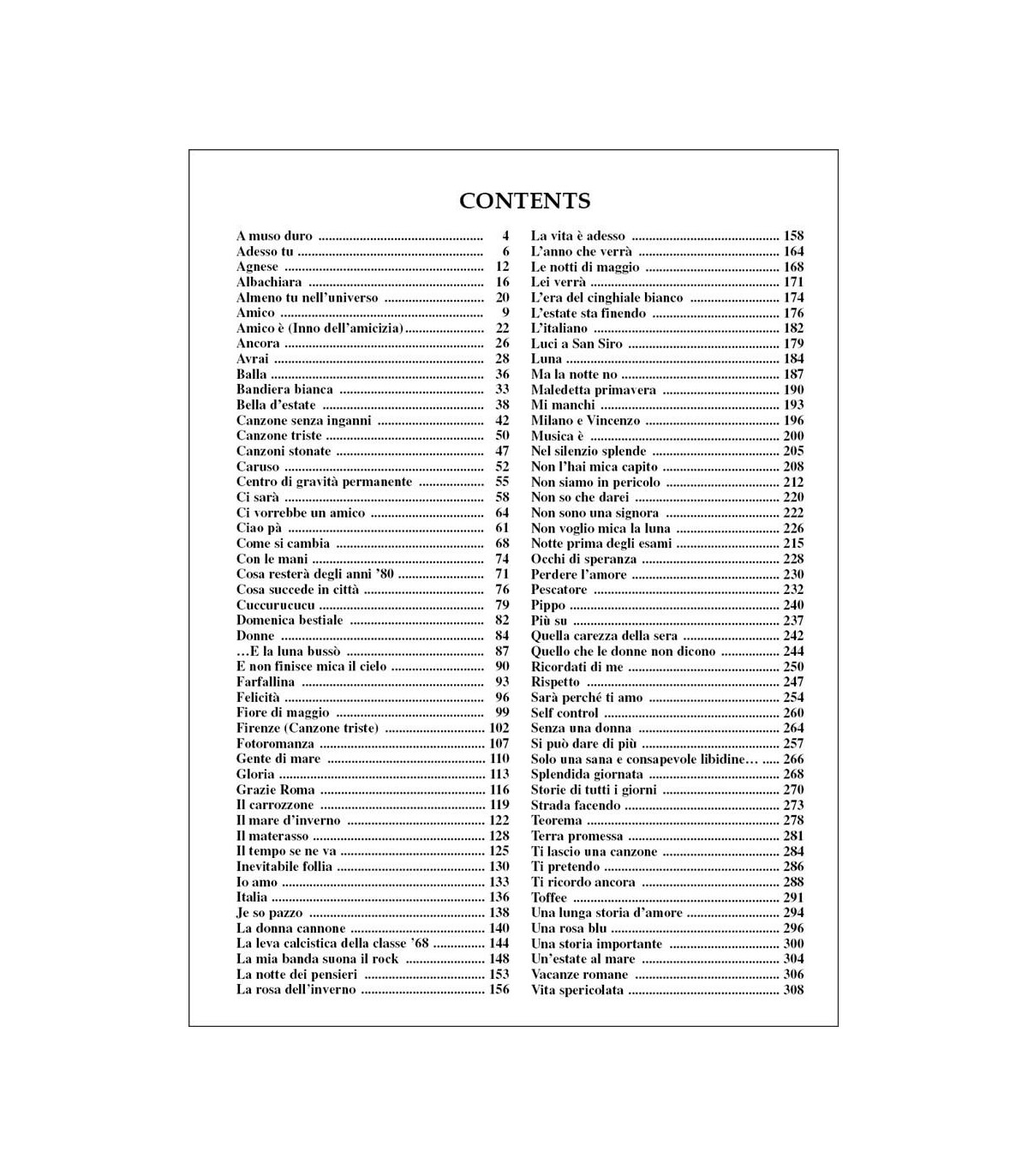 Including well-known songs like Ancora, Pescatore, Il Carrozzone, Più Su, Luna, as well as many more.