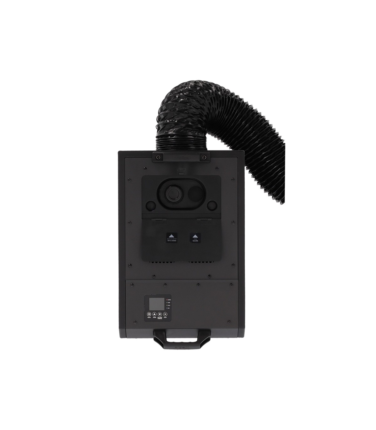 La NEBEL2000 ABS non sacrifica la funzionalità per la leggerezza. Include un chiaro display LCD per un facile controllo delle diverse modalità operative: DMX per un'integrazione precisa nel tuo sistema di illuminazione, telecomando HF per un pratico controllo a distanza, modalità timer per sequenze programmate e modalità manuale per un utilizzo immediato. Questa versatilità ti dà la grande libertà di adattare l'effetto fumo basso all'atmosfera desiderata. Il suo serbatoio dell'acqua da 15 litri e il serbatoio del liquido fumo da 1,3 litri garantiscono un'ampia autonomia per i tuoi service.