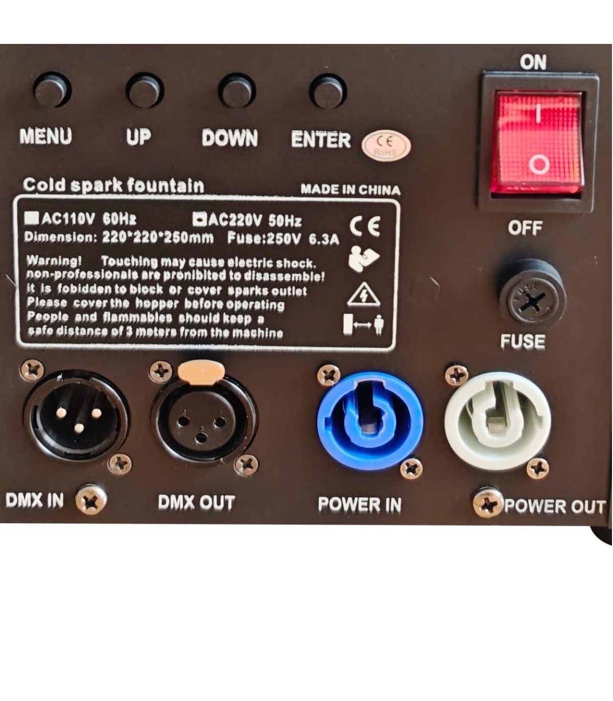 Spark machine da 650 watt in grado di generare una fontana luminosa fredda alta fino a 5 metri. Controllabile via DMX o telecomando wireless per la massima versatilità e facilità di utilizzo. Ideale per teatri, spettacoli live, matrimoni, hotel, feste di compleanno ecc…
