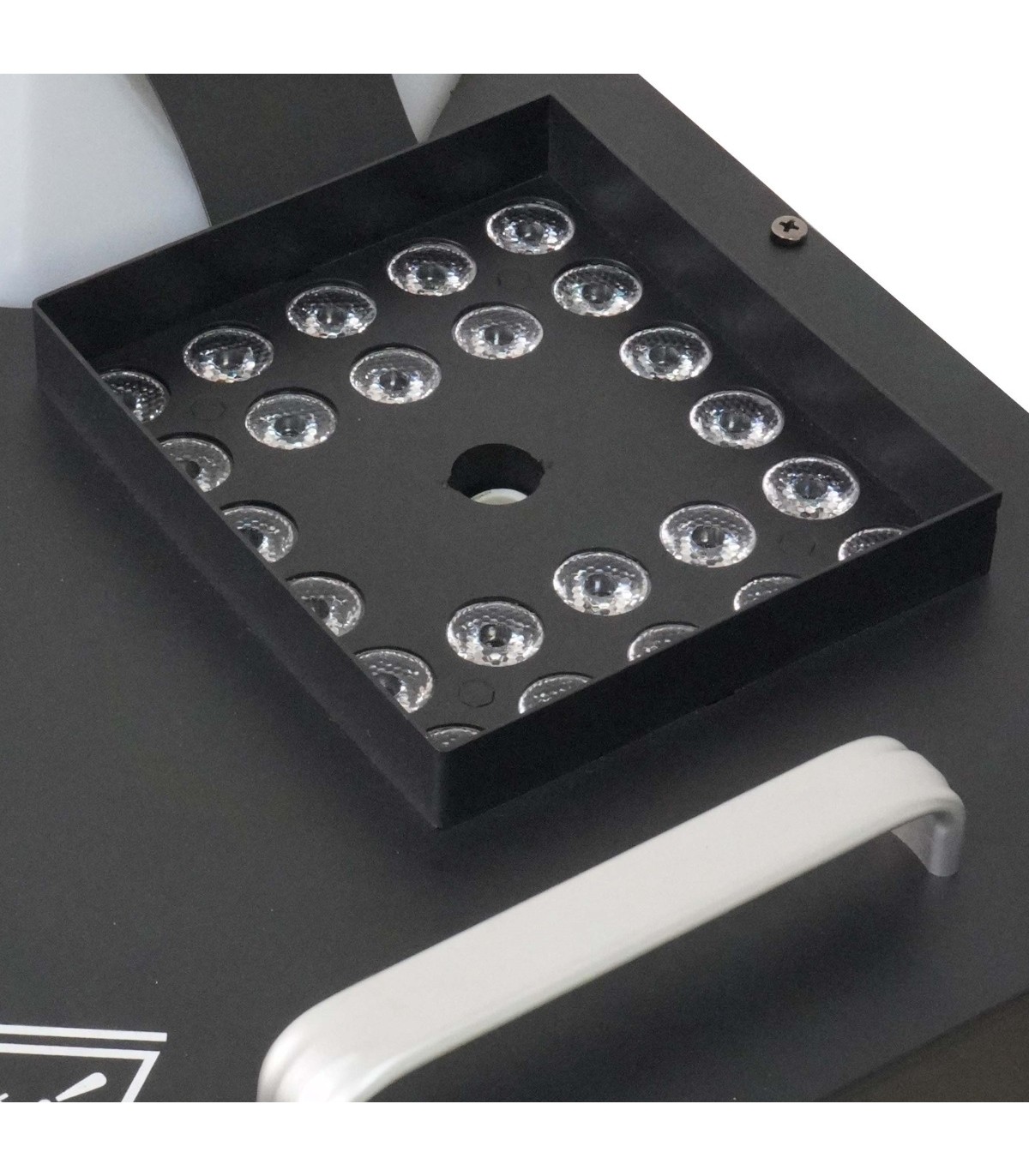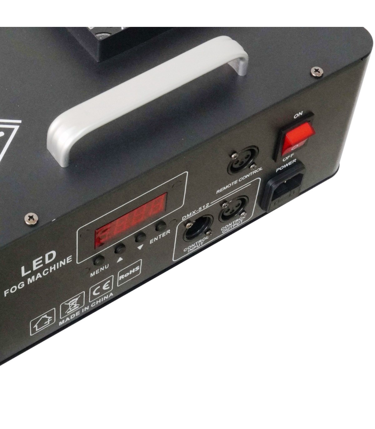 GOLDEN CENTURY F1500LQ-24 MACCHINA DEL FUMO 1500 WATT DMX 24 LED RGB 3 WATT GETTO VERTICALE TIPO CO2 TELECOMANDO REMOTO GITTATA 6 METRIMacchina del fumo 1500 watt. 24 luci da 3 watt con colori Rosso, Verde, Blu. Controllo manuale. Capacità di serbatoio 2,5 litri. Gittata 6 metri. Uscita fumo 20000 cuff/min. Tempo di riscaldamento 10 minuti. Possibilità di controllo Wireless fino ad una distanza di 25 metri.Caratteristiche tecniche: Macchina del Fumo Consumo: 1500 watt 24 luci da 3 watt Colori luci: Rosso, Verde, Blu Resistenza: 50.000 ore Controllo: DMX, Automatico, Wireless, Remoto Controllabile DMX 512 Capacità di serbatoio: 2,5 litri Tempo di riscaldamento: 10 minuti Gittata 6 metri Uscita fumo: 20000 cuff/min Voltaggio: AC220-240V - 50Hz Dimensioni: 455 x 350 x 365 mm Peso: 6 Kg