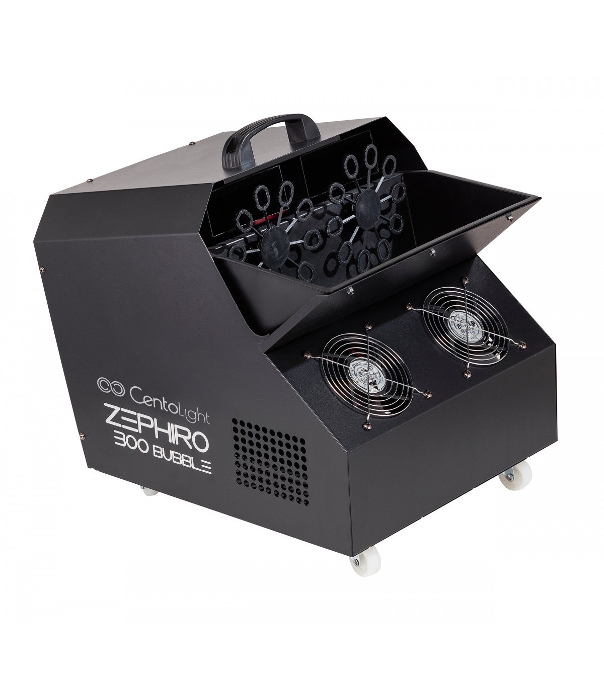ZEPHIRO 300 BUBBLE è una macchina professionale per bolle in grado di coprire ambienti di dimensioni medio-piccole con questo divertente effetto.