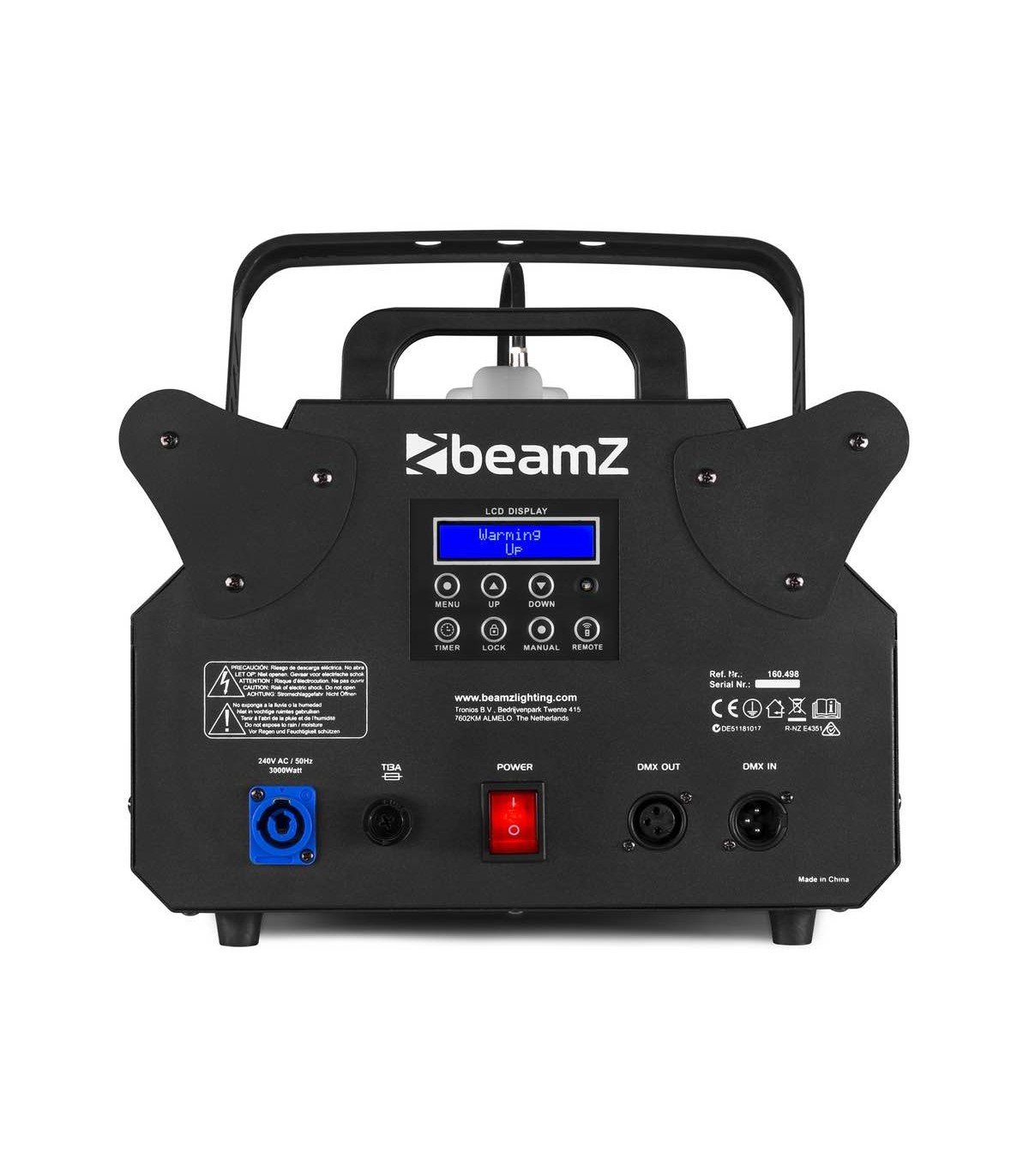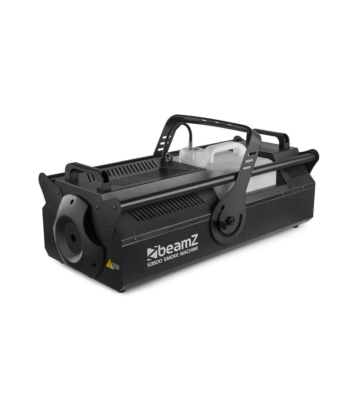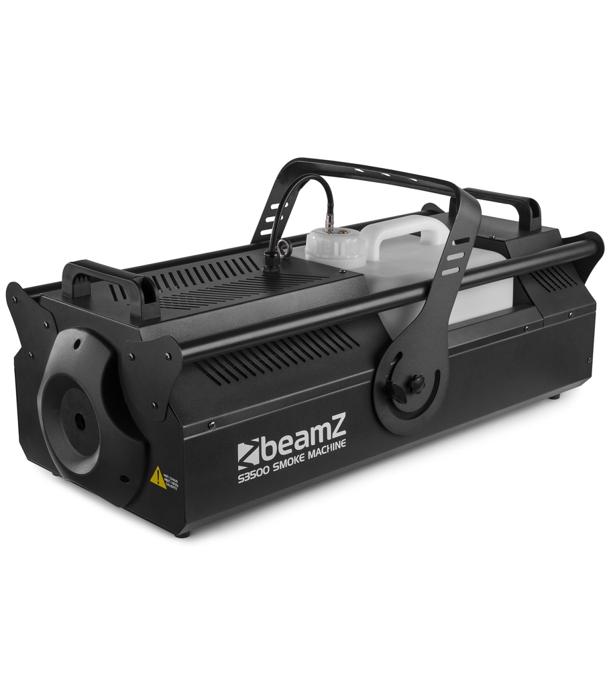 BeamZ S3500 è una macchina del fumo ultra resistente in grado di produrne gradi quantità proprio quando ne hai bisogno. La potente macchina del fumo da 3500 watt include un pannello di controllo integrato con display LCD e un telecomando wireless per garantire che il fumo venga rilasciato al momento giusto. Dopo il periodo di riscaldamento di 6 minuti a freddo (o 1,5 minuti a caldo), sarai pronto a rilasciare una nuvola di fumo capace di coprire oltre 1200 m3 al minuto!