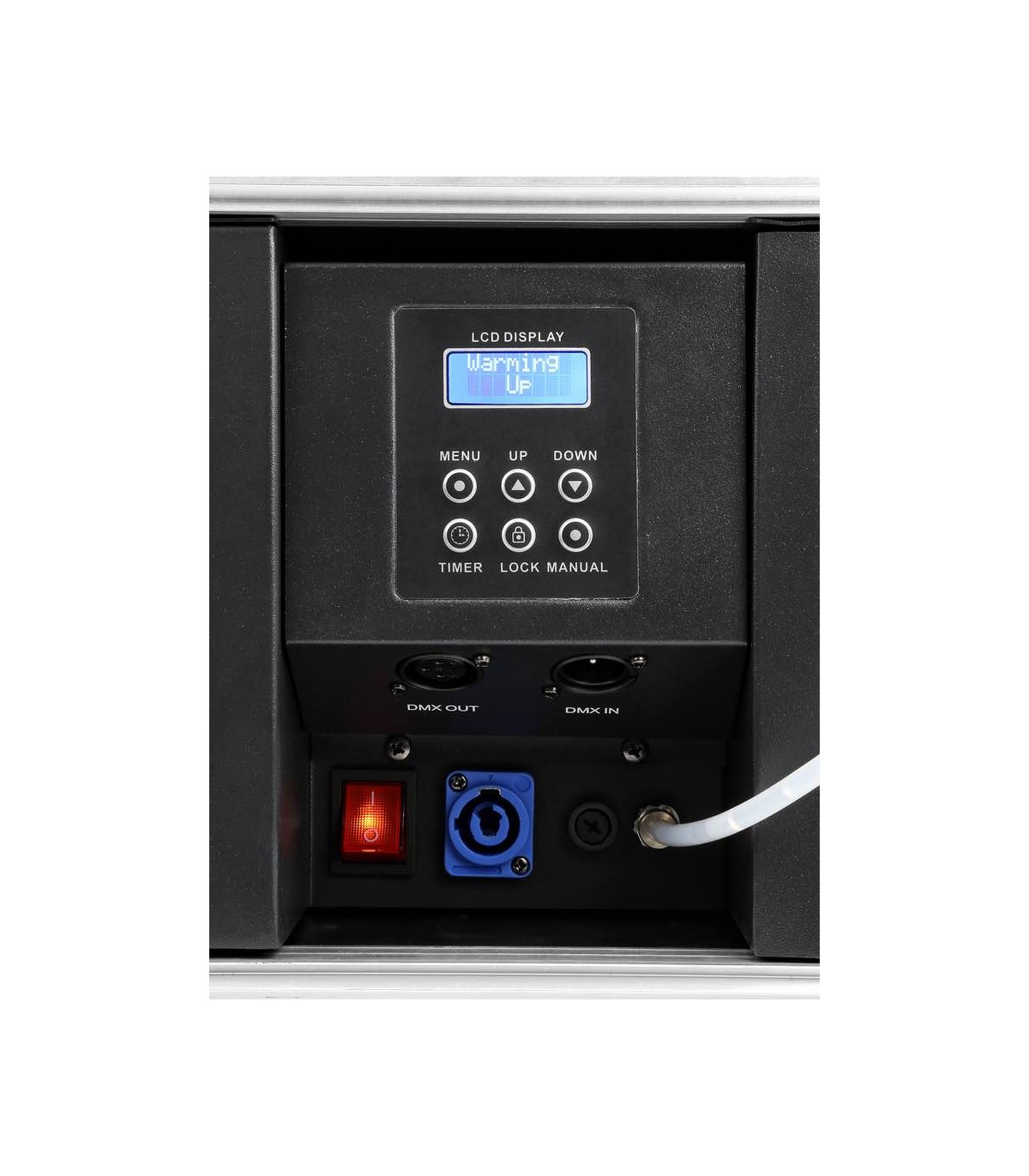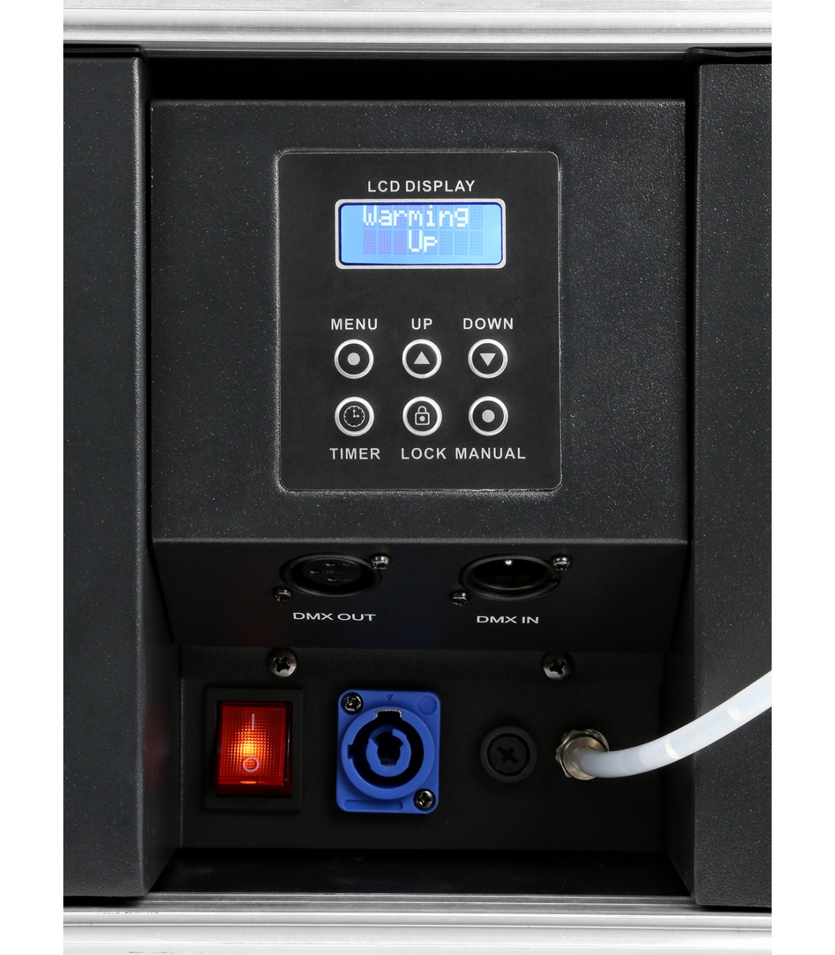 L'F1600 è controllato con 2 canali DMX. È possibile controllare la ventola interna e l'uscita in modo indipendente. Con l'aiuto della ventola l'emissione di fumo sarà distribuita in modo sottile nella sala. La direzione del fumo può anche essere facilmente modificata con il deflettore dell'aria regolabile.