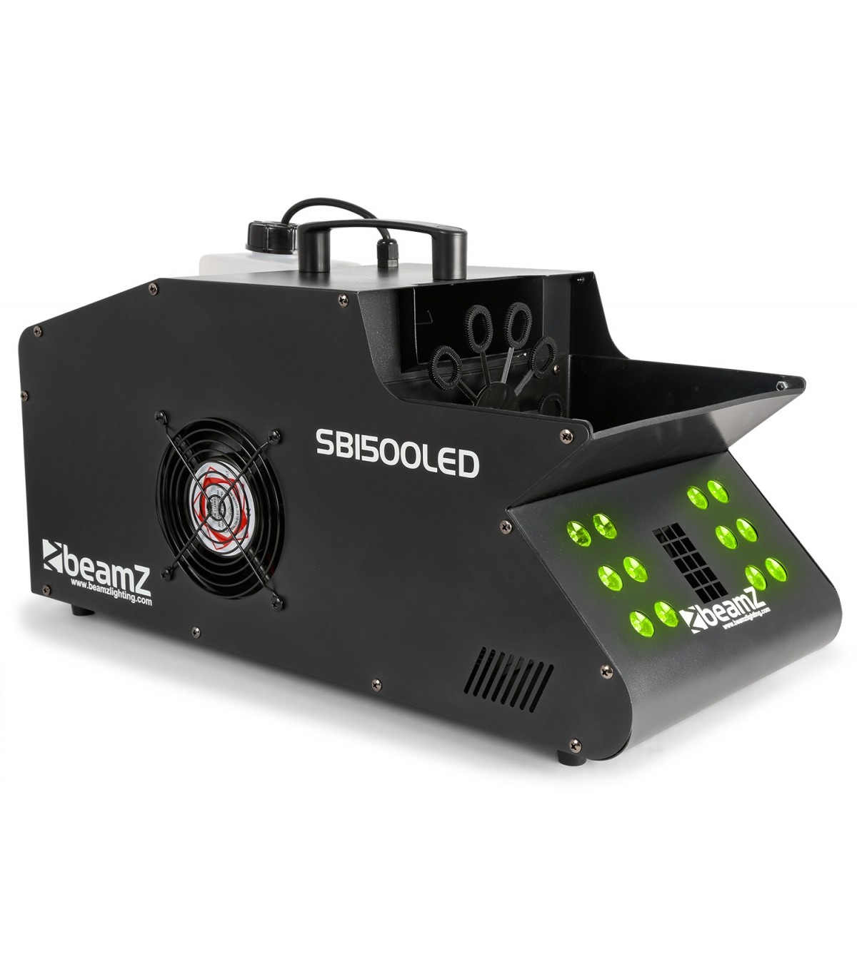 SB1500LED è una combinazione di fumo, bolle e LED 3 in 1 integrati in un unico contenitore. Il ventilatore della macchina SB1500 crea molte bolle che si riempiono di fumo ogni minuto, creando al contempo una flusso verso l'alto che consente alle bolle di salire in alto nell'aria. Questo sistema ha 12 LED 3W nei potenti colori: rosso, verde e blu. SB1500 è facile da caricare, facile da usare e facile da pulire. Alla fine dello spettacolo, non avrai problemi a ripulire grazie al sistema di valvole di drenaggio liquido. L'SB1500 ha due maniglie e ruote integrate che facilitano il trasporto. Sebbene sia in grado di utilizzare la maggior parte dei tipi di fluido per bolle, l'SB1500 è il miglior abbinamento con Beamz Bubble Liquid (160.575) e Beamz Smoke fluid (160.582) per l'intrattenimento con bolle più soddisfacente e di altissima qualità.