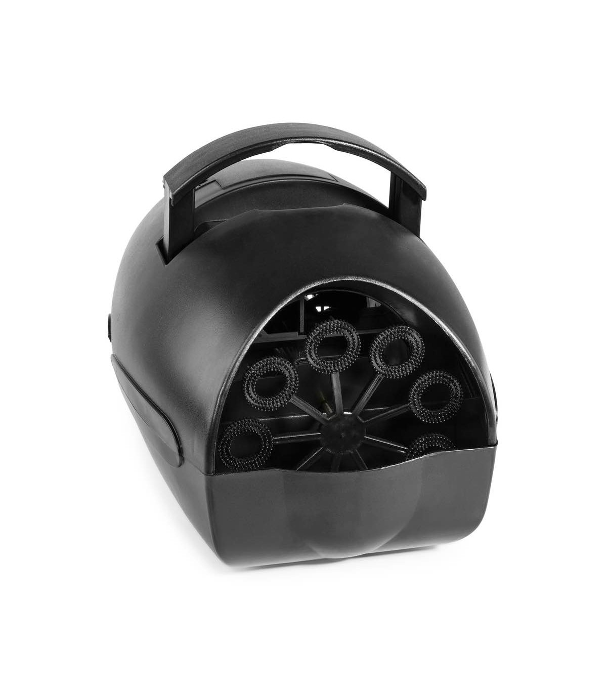 Piccola ma potente macchina a bolle per produrre grandi quantità di bolle per l'effetto extra disco. Funziona con entrambe le batterie (escluse) o con l'alimentatore esterno (incluso).
