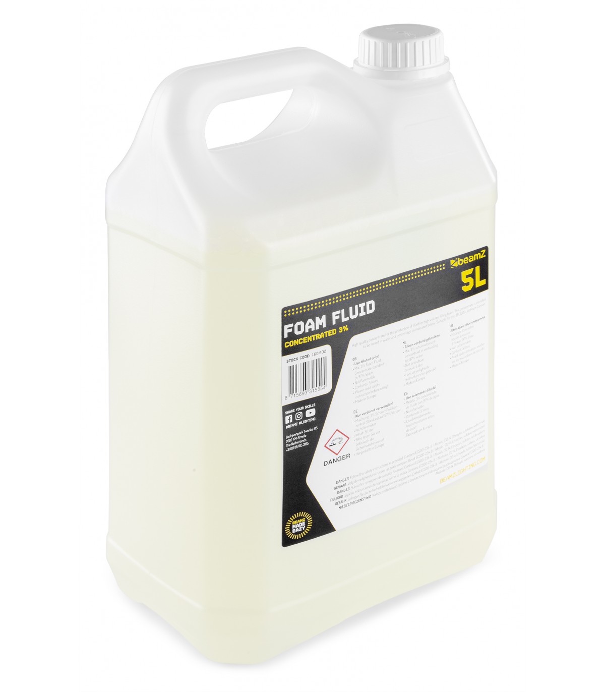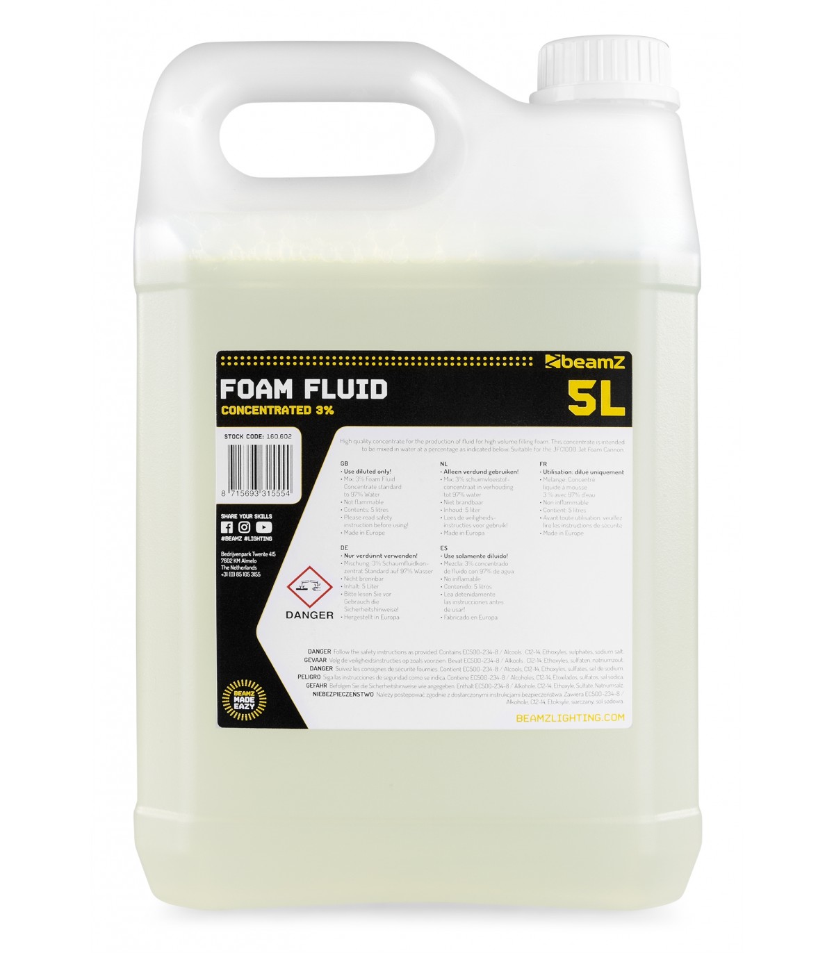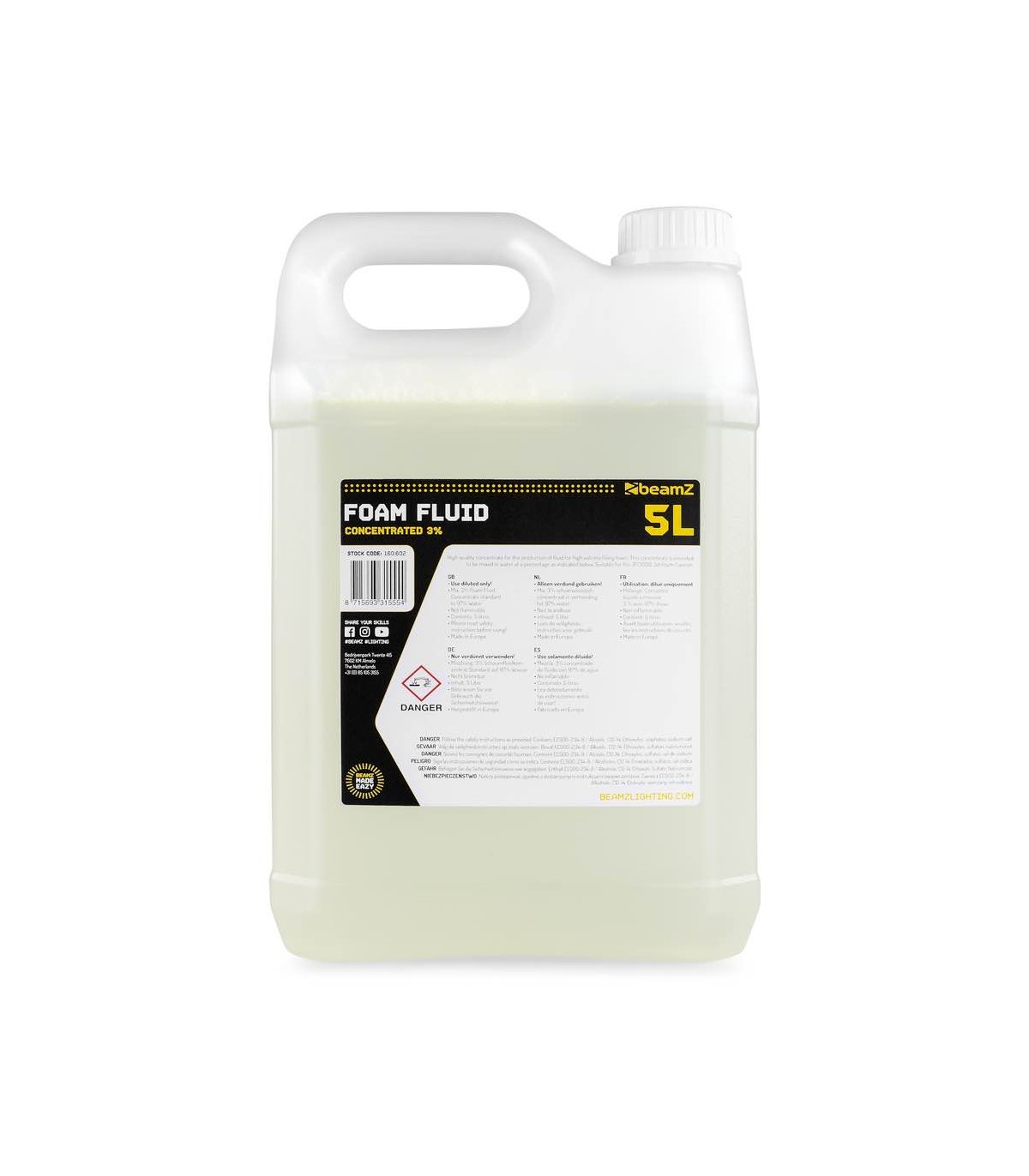 Liquido concentrato di alta qualità per la produzione di schiuma ad alto volume. Questo concentrato deve essere miscelato in acqua con percentuali di dosaggio come indicato di seguito. Adatto per il cannone a schiuma JFC1000.