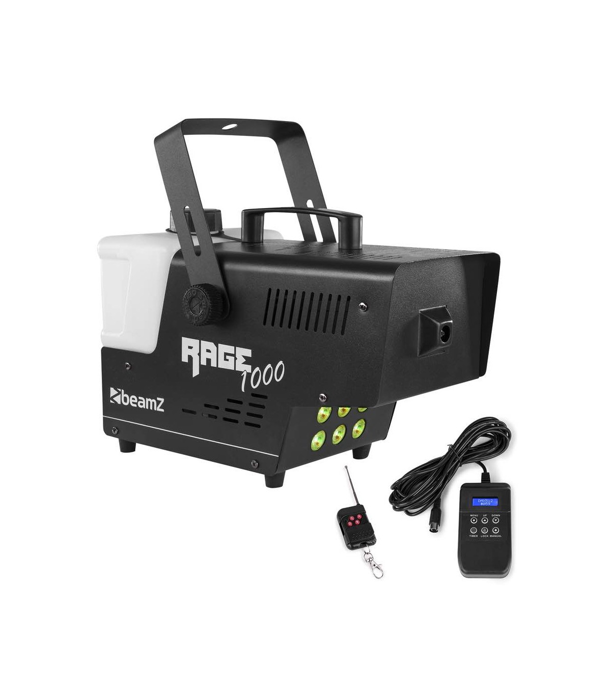 Rage1000LED è un'elegante macchina da fumo DMX da 1000 W che offre un eccezionale effetto nebbia in combinazione con i 6 LED 3-in-1 (RGB) da 9W ad alta potenza per infinite possibilità di colore. Questa macchina per il fumo ha un robusto alloggiamento in metallo e una capacità del serbatoio di 2 litri! Può essere utilizzato con il telecomando cablato incluso (cavo da 3 m) e con il telecomando wireless. Adatto a spazi di piccole e medie dimensioni. &Nbsp Il serbatoio illuminato a LED facilita il controllo del livello del liquido di nebbia.