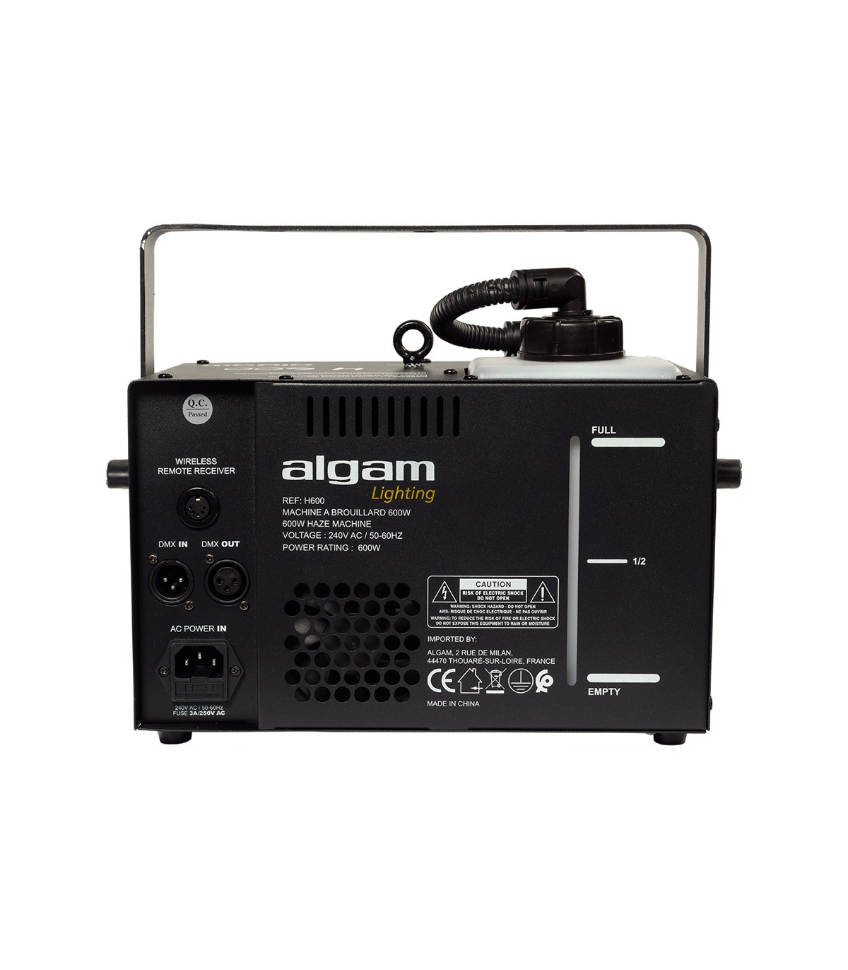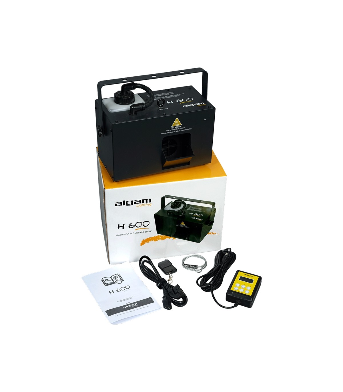 La Algam Lighting H600 è una macchina del fumo sorprendentemente compatta per i suoi 600W di potenza che sublima i tuoi effetti di luce grazie alla sua produzione di una nebbia densa e regolare. La sua robusta costruzione in acciaio, il suo serbatoio di grande capacità di 1,2 litri e il suo tempo di riscaldamento record di 40 secondi ne fanno la macchina del fumo ideale per feste private o per tutti gli eventi in sale di medie dimensioni. L'H600 offre diverse modalità operative e numerose impostazioni (intervalli e durate di attivazione, timer automatico, volume di fumo in uscita, velocità della ventola), tutte controllabili tramite DMX o direttamente dal telecomando cablato con display LCD. Per una resa ottimale, Algam Lighting raccomanda l'uso di un liquido nebbia (HAZ-WBS).