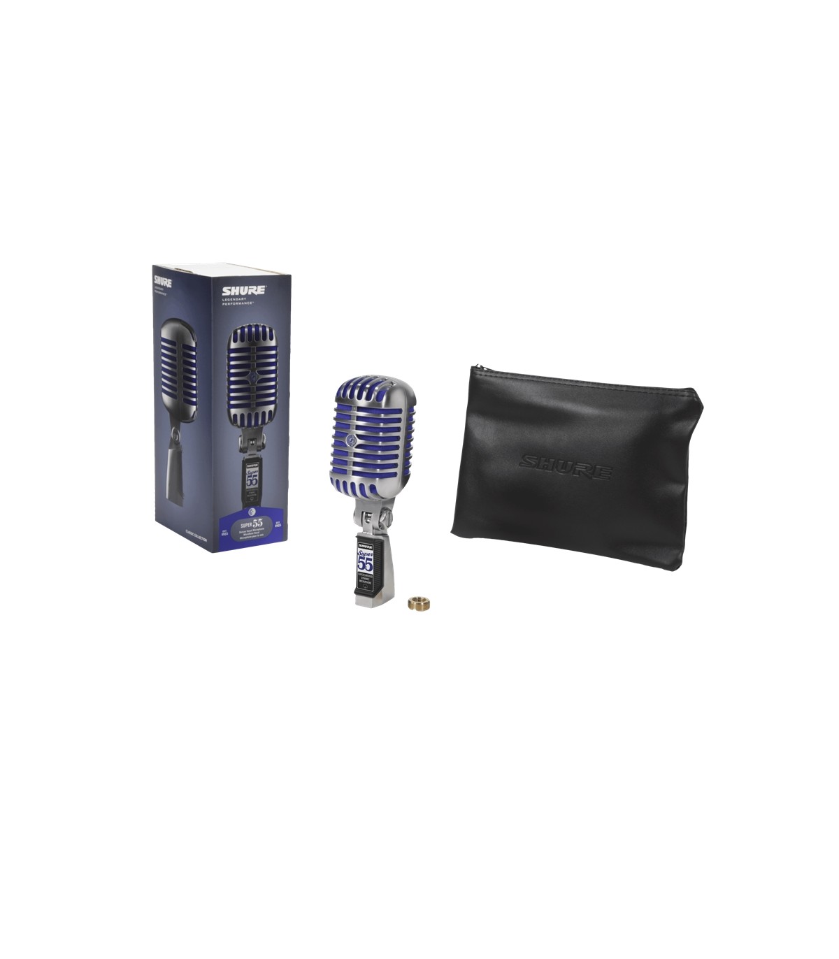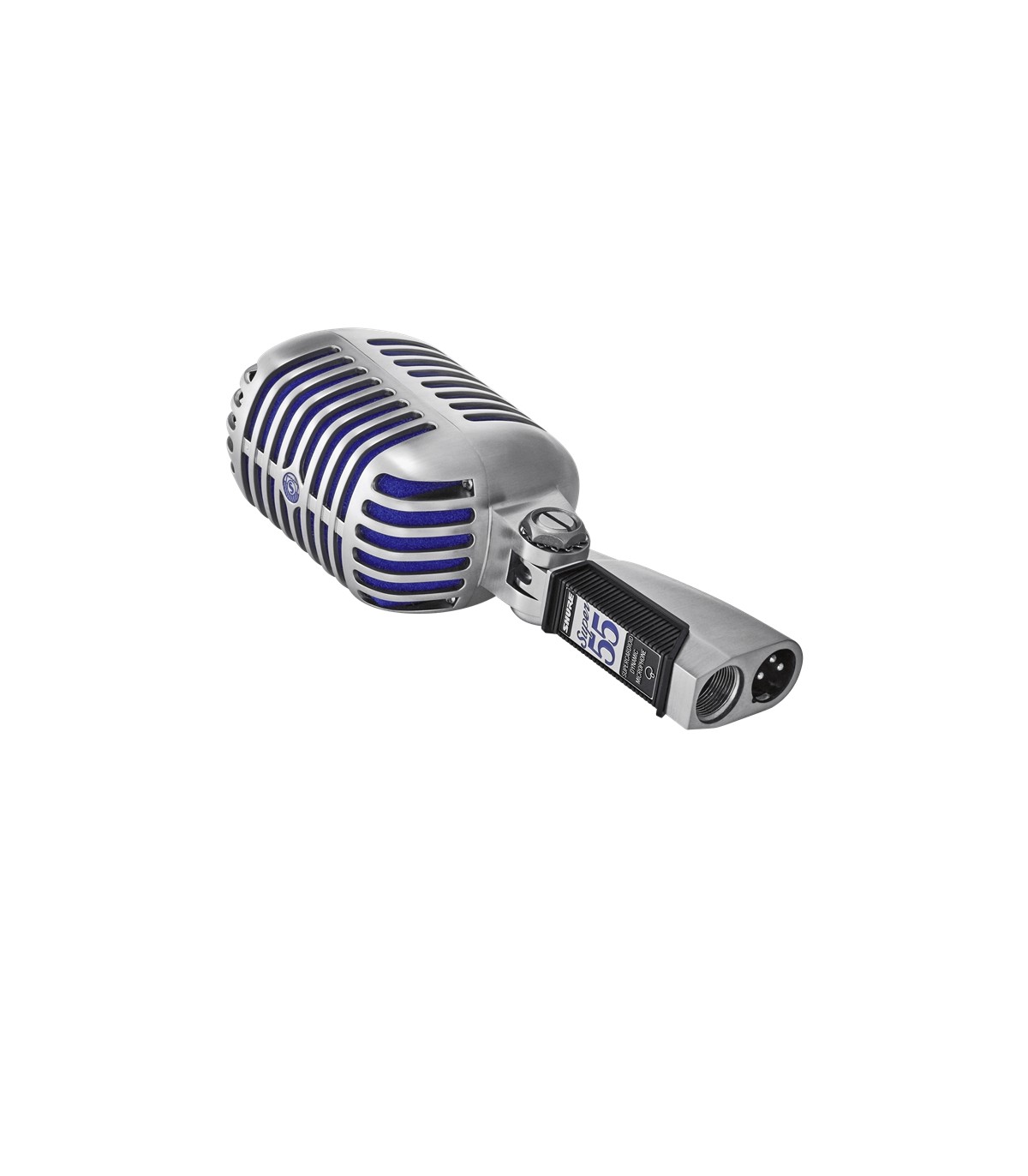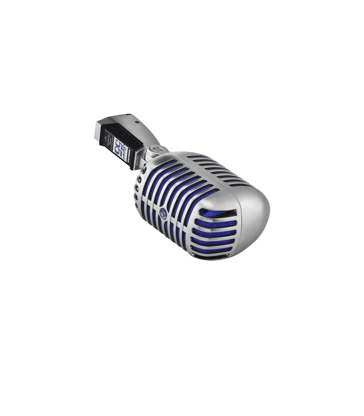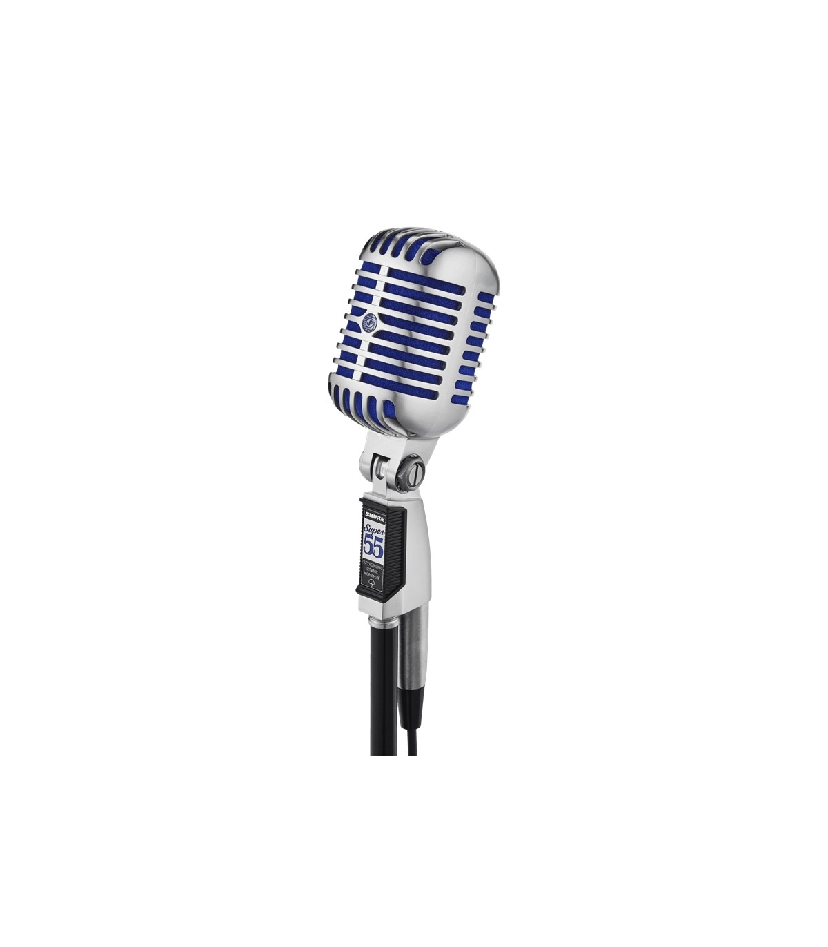 Microfono da canto dinamico, supercardioide realizzato unendo il design iconico degli anni 50 alle migliori tecnologie audio moderne. La capsula dinamica antivibrazioni riduce al minimo il rumore del sostegno. Supporto per asta integrato con connettore XLR e interruttore on/off. La capsula