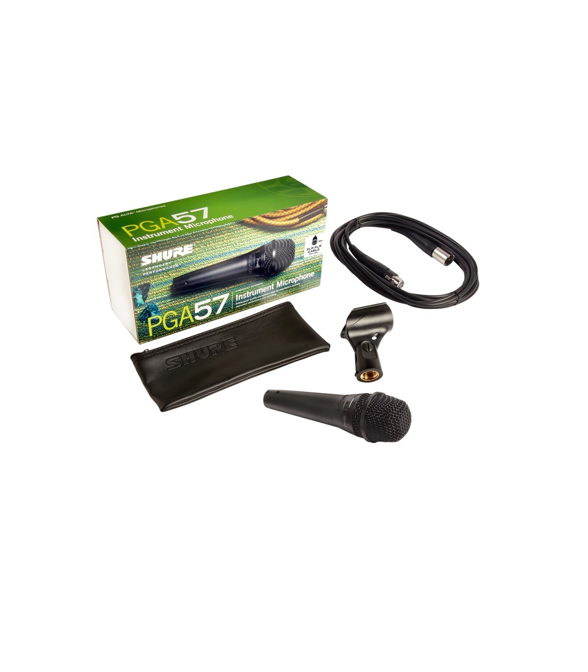 Il PGA57 è un microfono dinamico dalla caratteristica ripresa cardioide progettato prendendo spunto dall'SM57. È un'ottima scelta per la ripresa di strumenti che emettono elevate pressioni sonore come il rullante, i cabinet e i combo per chitarra o basso elettrici. Incluso in dotazione: adattatore per asta, astuccio con cerniera, cavo XLR da 4,6 metri.