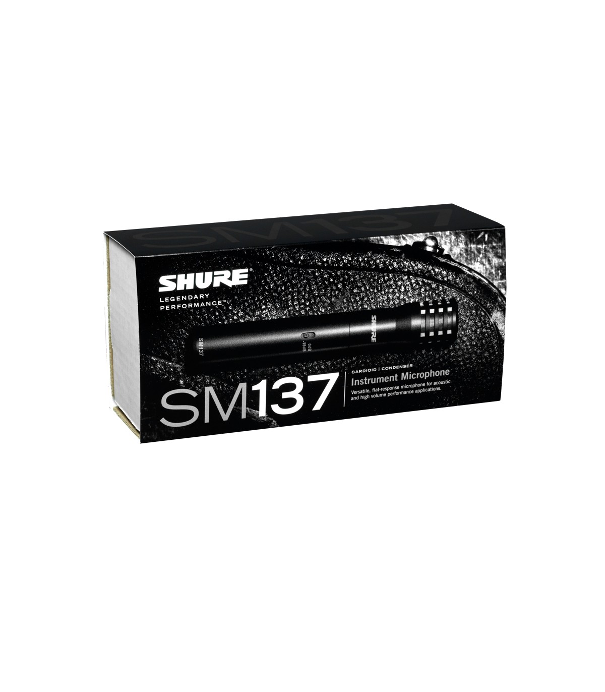 SM137 è un microfono a condensatore, cardioide, che grazie al suo diaframma ultrasottile offre una risposta veloce sui transienti e cattura le alte frequenze in modo omogeneo, per un'ottima definizione. Preamplificatore in Classe A senza trasformatore in uscita per ridurre ai minimi termini il self-noise. Questo microfono è adatto sia nella registrazione di strumenti acustici, sia per applicazioni ad alto volume grazie al suo attenuatore da 15dB. Viene fornito con supporto per asta a morsetto, antivento, adattatore filettato e custodia per il trasporto.