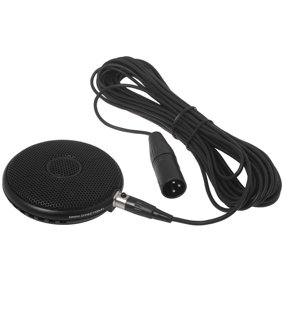 Microfono a condensatore electret boundary della serie E. Questo microfono perimetrale è progettato per superfici piane e adatto per la registrazione di trasmissioni, conferenze o conferenze. Il microfono presenta una risposta in frequenza di 30 – 18.000 Hz, una sensibilità di -39 dBV / Pa (11.2 mV), un’impedenza di 600 Ohm, una gamma dinamica di 103 dB, un SPL massimo di 127 dB. I requisiti di alimentazione sono 9-52 V Phantom power. La confezione include cavo da 10 m. Le dimensioni sono 85 x 22,5 mm. Il microfono pesa 200 g. Il microfono viene fornito con finitura nera.