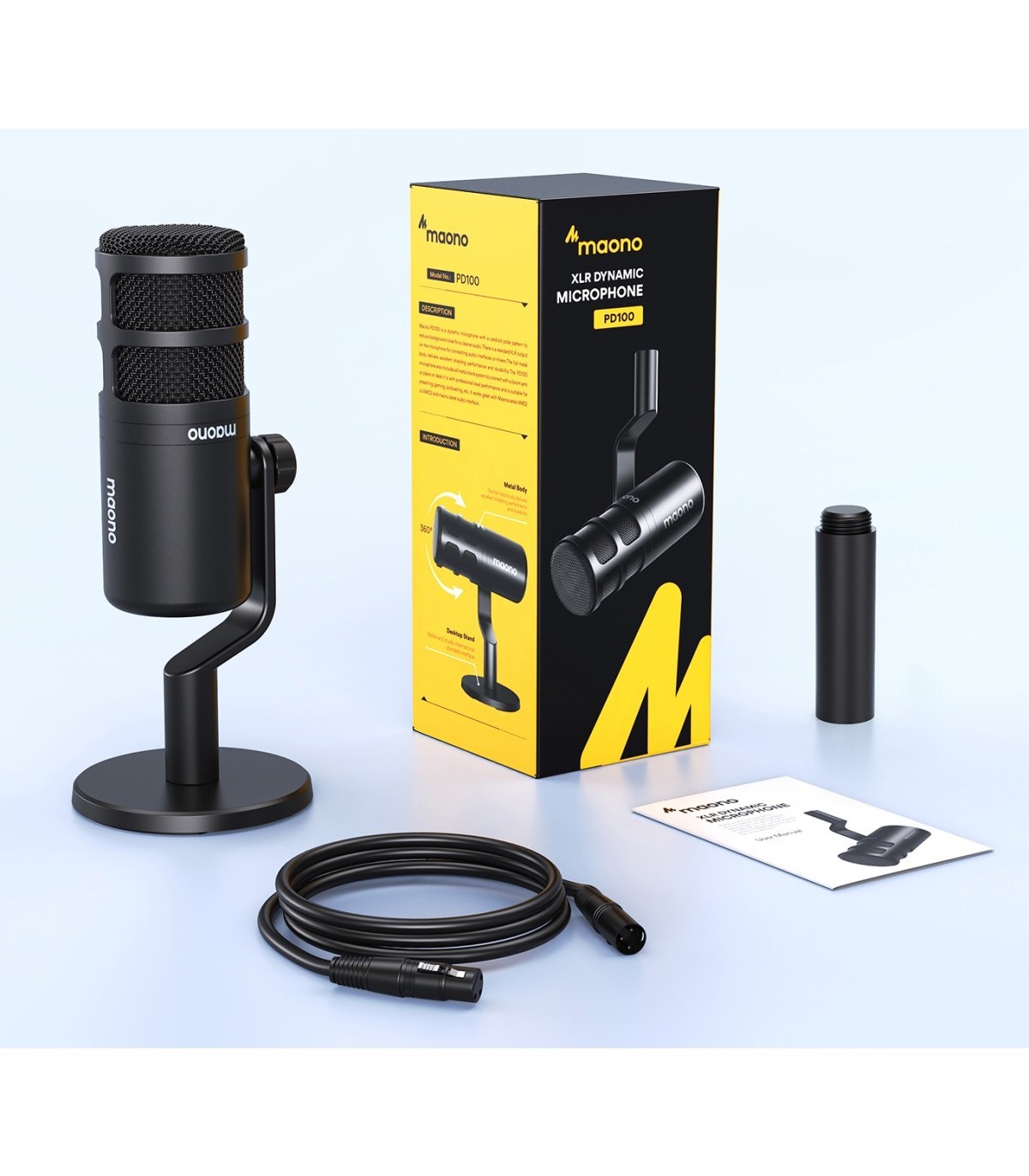 - Supporto da tavolo in metallo e cavo XLR inclusi