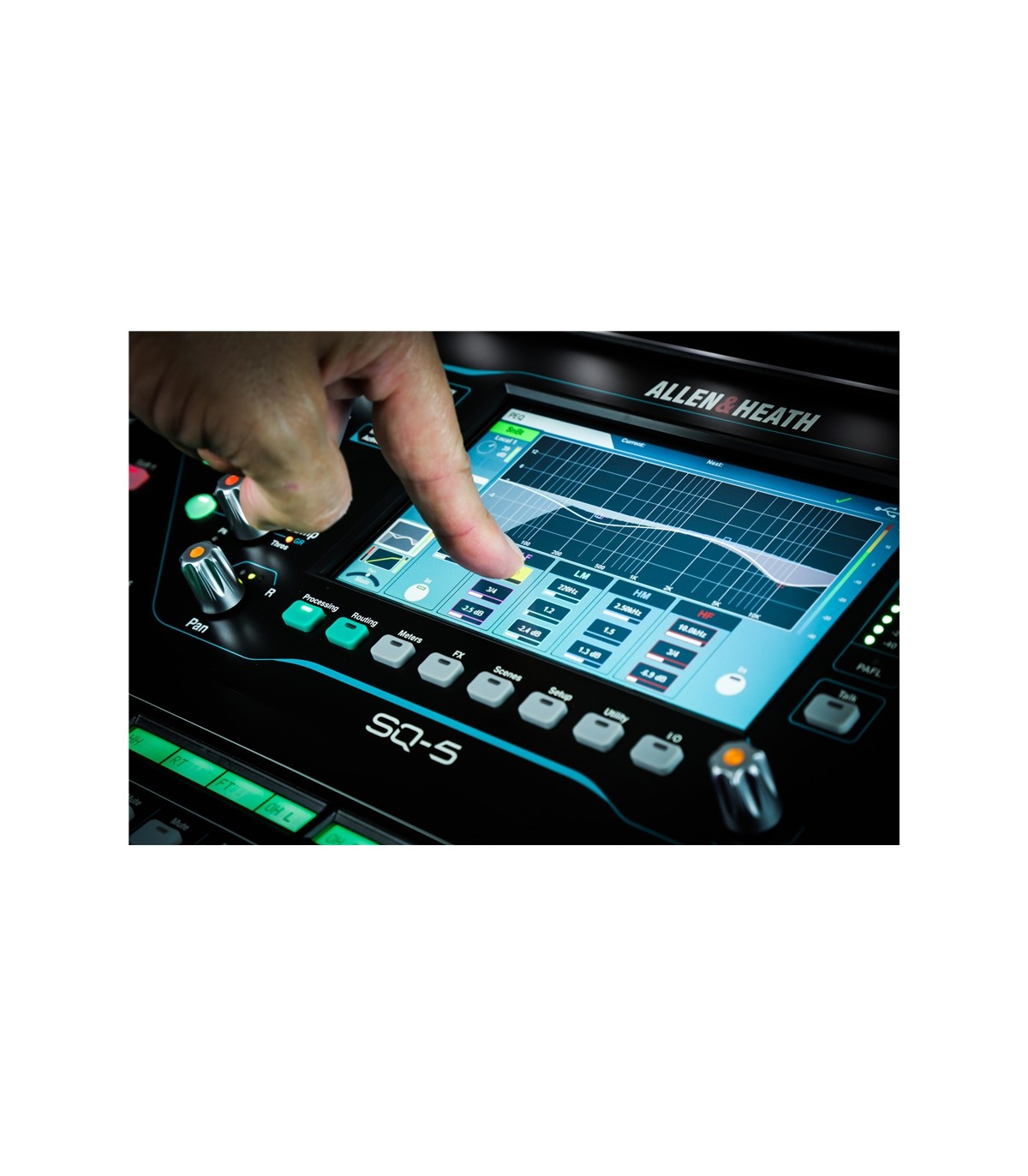 Allen & Heath SQ-6 è dotato per ogni canale di tutti i processori di segnale necessari per creare un mix perfetto. Ognuno degli ingressi dispone di HPF, un gate super veloce con sidechain e filtro, un equalizzatore parametrico a 4 bande e compressore Peak/RMS per il controllo e la modellazione di livelli e transienti. I mix hanno sia l’equalizzatore grafico da 28 bande che uno parametrico ed un compressore pronti per essere attivati ??quando richiesto. Il core XCVI consente anche ai compressori dell’Allen & Heath SQ-6 di avere il proprio canale in parallelo, senza problemi di fase o di coerenza.