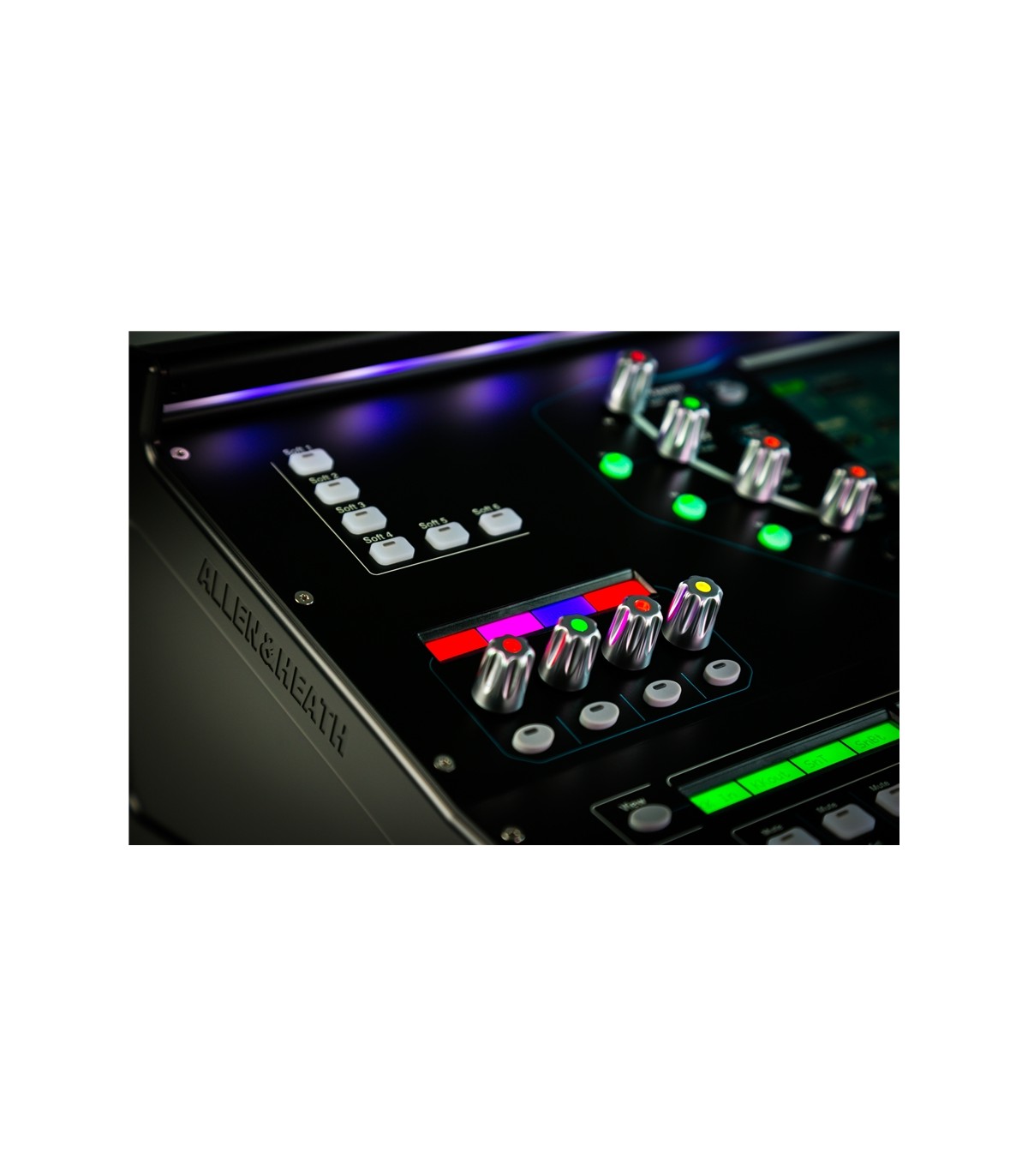 Gli ingegneri e sviluppatori Allen & Heath pensano che sia l’utente a dover decidere come funziona il mixer e non viceversa. Ecco perché il mixer Allen & Heath SQ-6 è dotato di opzioni che consentono di personalizzare il workflow della macchina. Canali e mix possono essere trascinati e rilasciati individualmente su qualsiasi channel strip, con nomi personalizzati e con codifica a colori sui display, così da avere il pieno controllo del layout e in più troviamo 16 softkey e 4 potenziometri con funzioni assegnabili. Il touchscreen da 7" e la relativa manopola rendono la navigazione e la regolazione dei parametri di Allen & Heath SQ-6 veloce e intuitiva. Un pulsante di mixaggio "channel to all" ci consente di accede istantaneamente a tutti i livelli di mandata e alle assegnazioni per il canale selezionato. Ogni channel strip è dotata del sistema brevettato Allen & Heath di metering cromatico, che fornisce un'indicazione del livello visiva utilizzando luminosità e colore variabili.