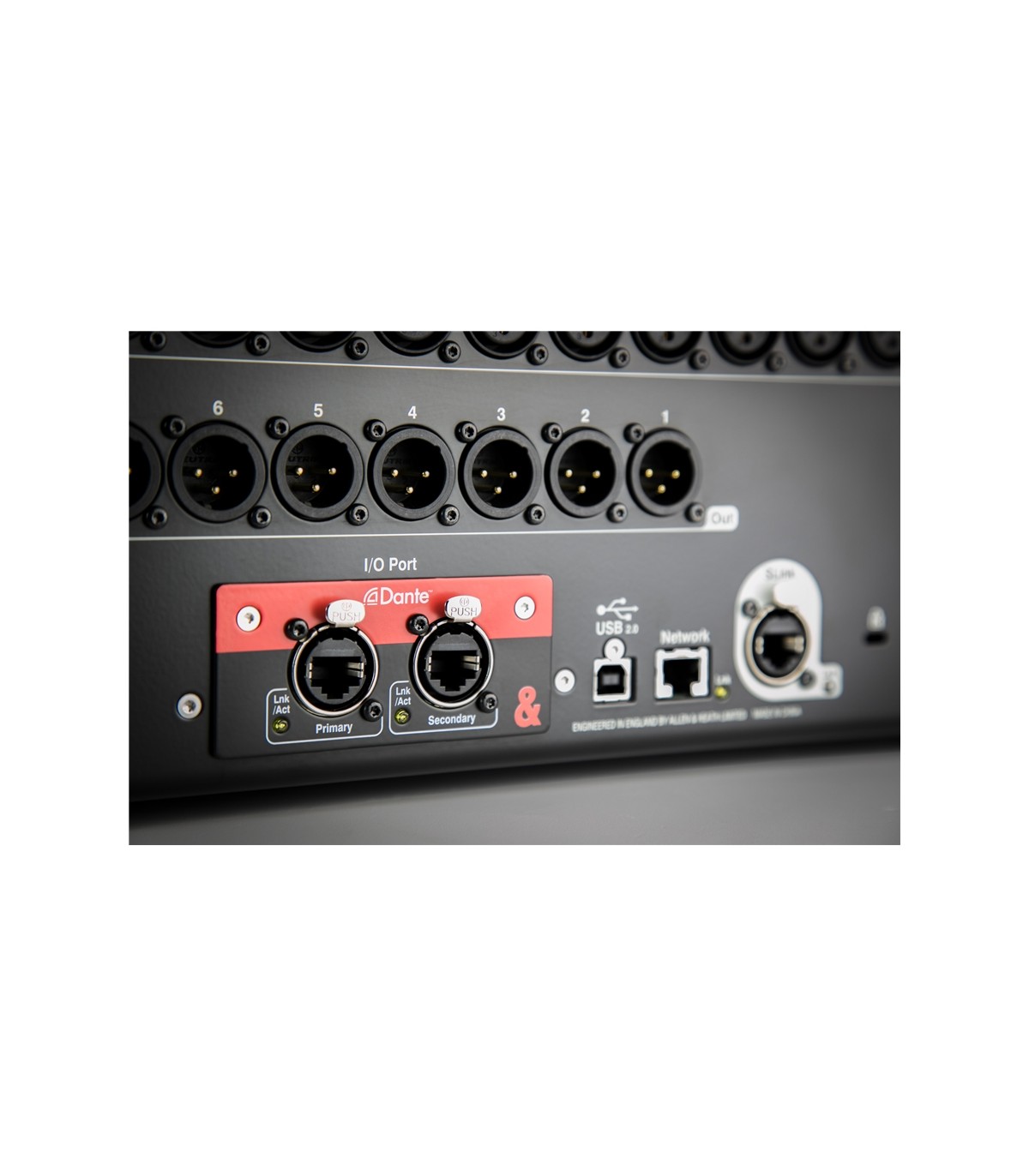 Se 32 canali non fossero sufficienti, è possibile espandere gli ingressi e le uscite installando una scheda di rete audio Dante o Waves raggiungendo così i 64x64 canali.