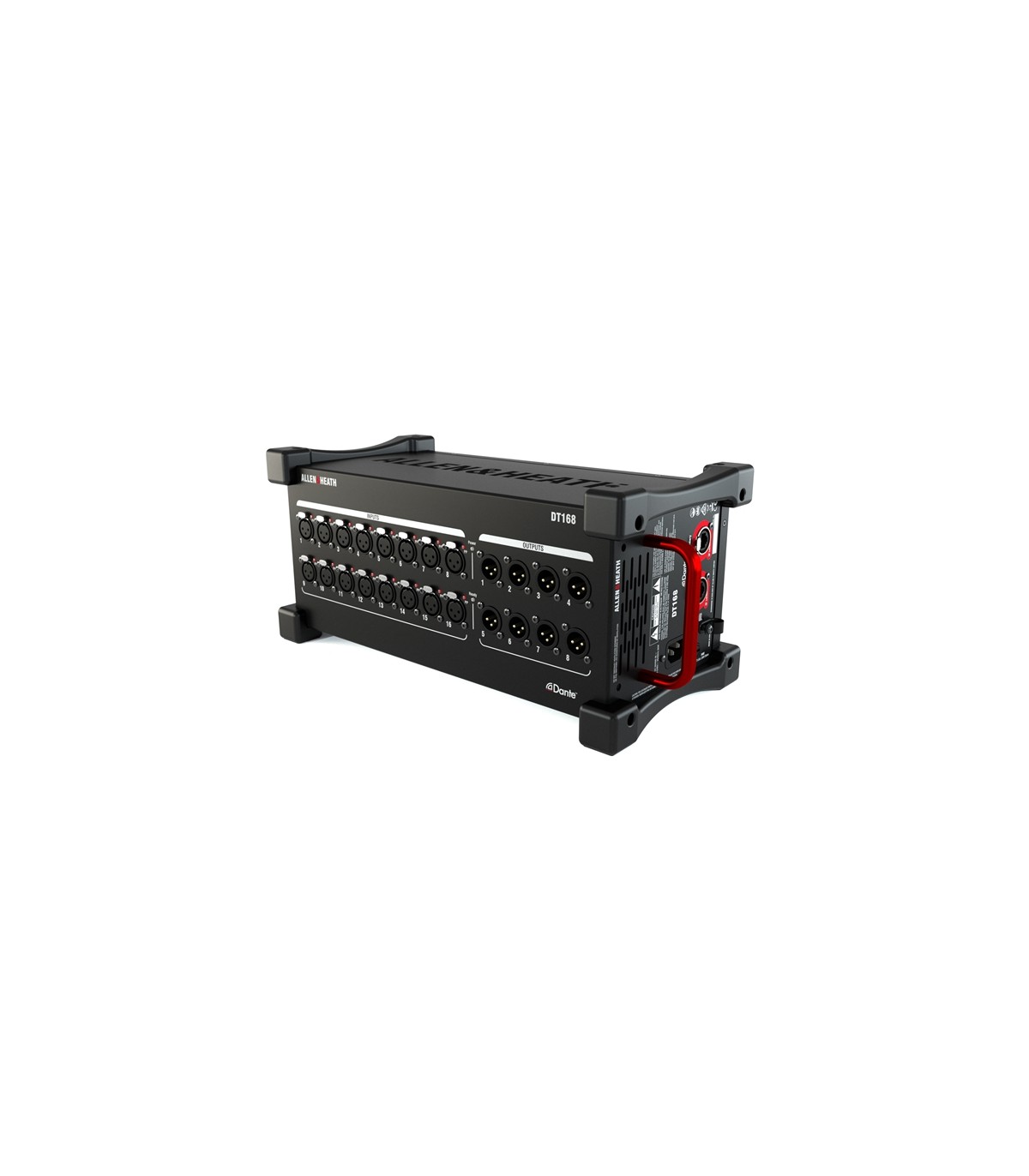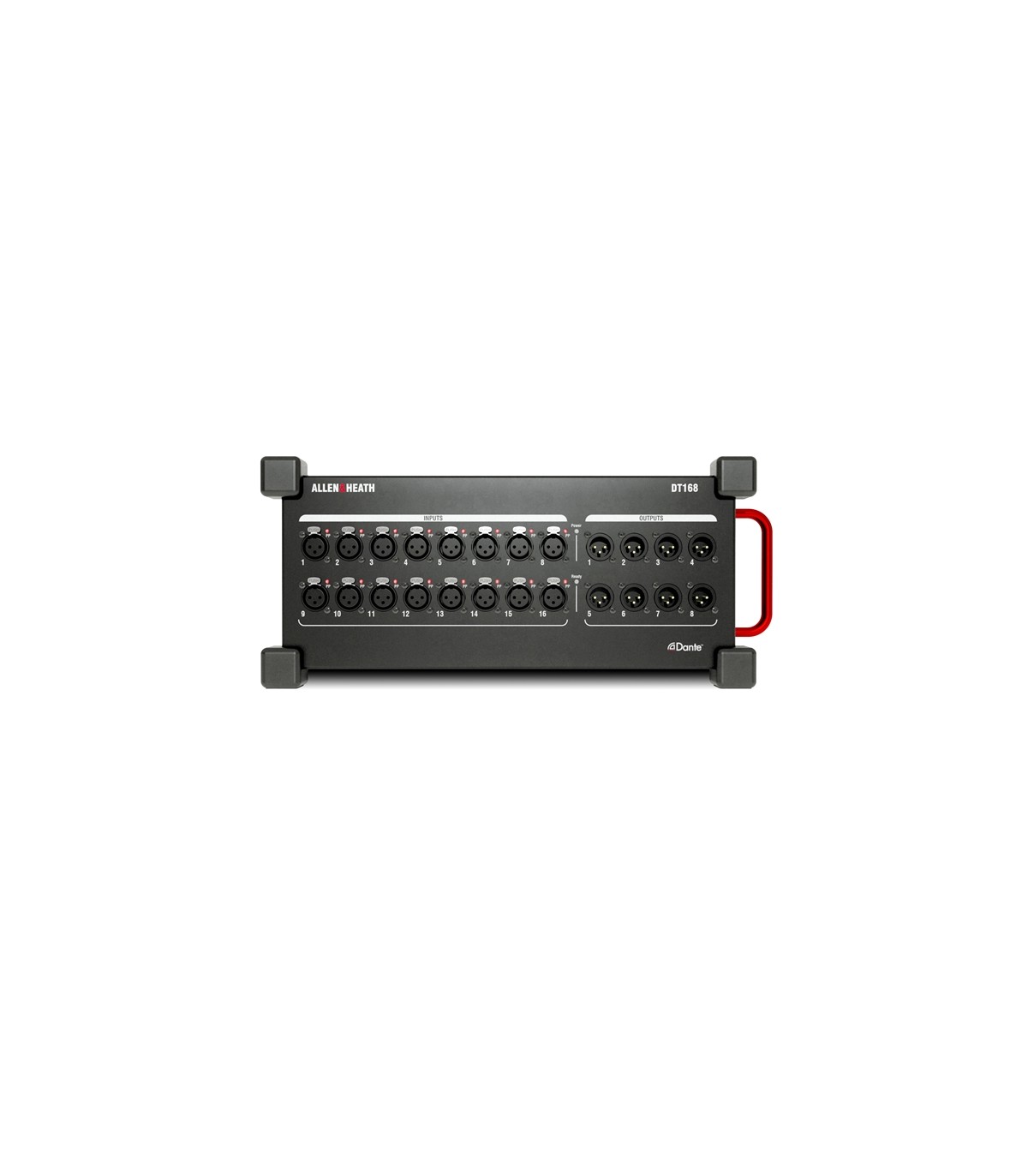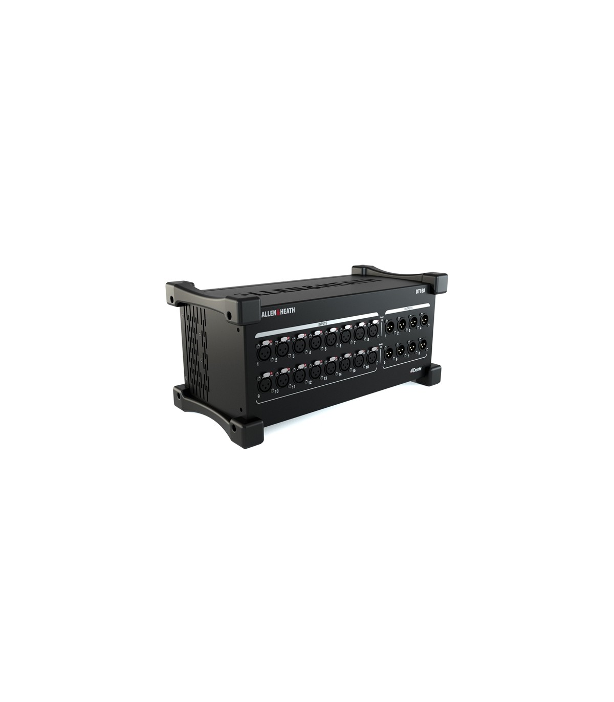 Espansione/Stage Box I/O per mixer SQ, Avantis, AHM, dLive equipaggiati di DANTE Card. Offre 16 ingressi con relativi Mic Preamp e 8 Line out. Opera a 48 o 96kHz. Dispone di porte Primary e Secondary su conettori EtherCon, per configurazioni daisy-chain o ridondanti.